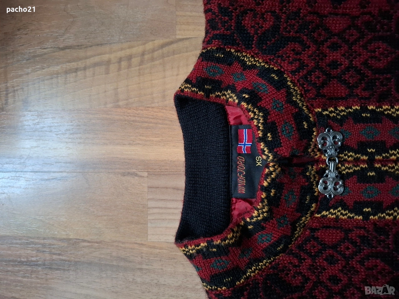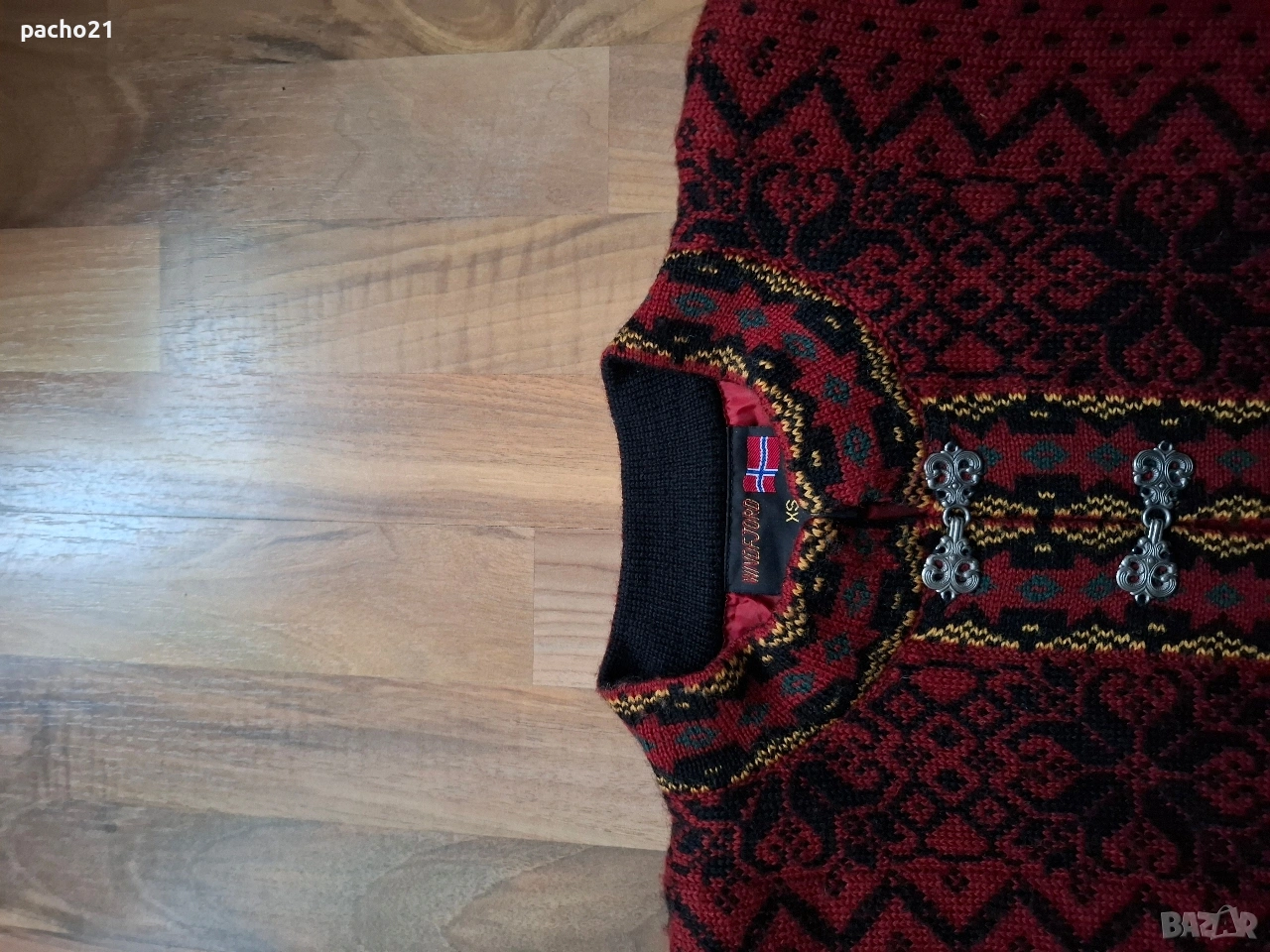 Windfjord Sweater Norway-Норвежка винтидж жилетка.Уникална,излъчва класически ретро сгил и чар.100%вълна изцяло с подплата. Унисекс са повечето на марката,ширина между мишници-52,5см,дължина-66см,ръкав от рамото до долу 47см,отговаря на мъжко С,или дамско по горен размер.Все още изглежда наистина добре. Цената е 30евро.