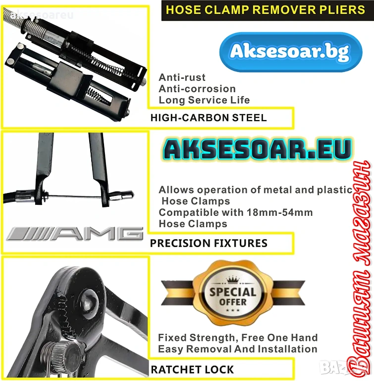 отстраняване на скоби за маркуч и клещи за пръстеновидни скоби