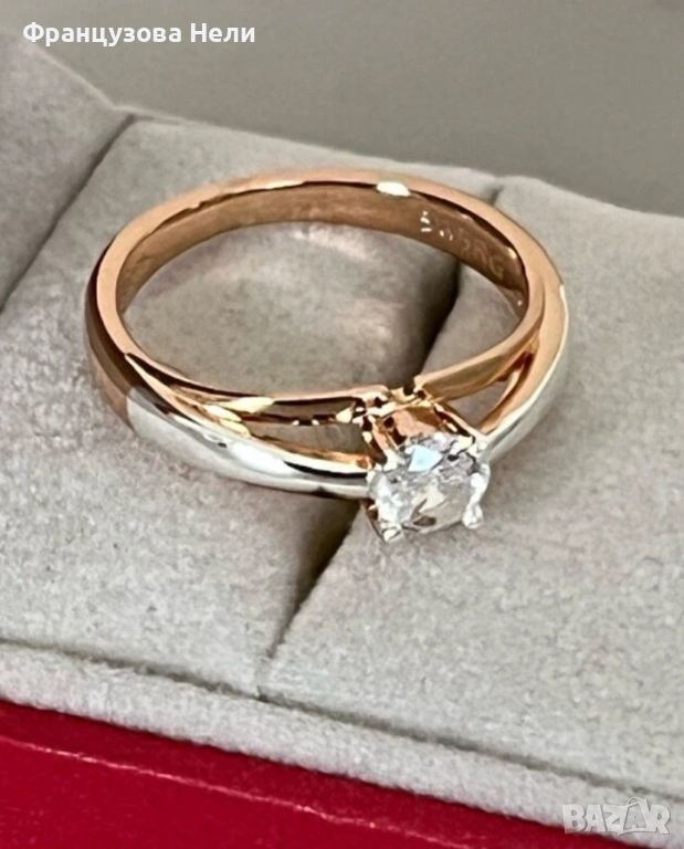 Двуцветен пръстен, изработен от валцувано злато, снимка 1 - Пръстени - 53783872 Двуцветен пръстен, изработен от валцувано злато, снимка 2 - Пръстени - 53783872 1/2