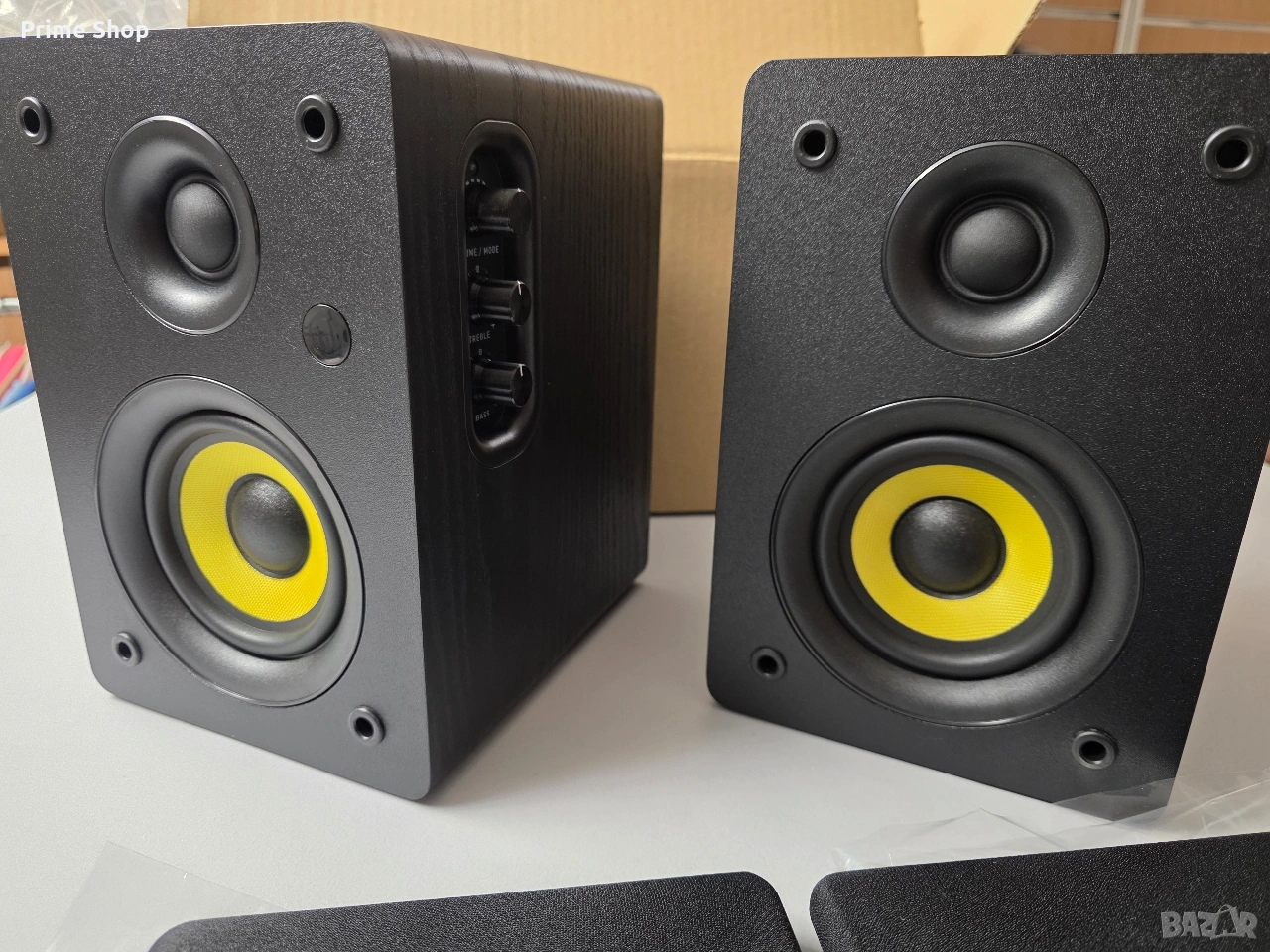 Важно! Продуктът е в неоригинална опаковка. Има лека драскотина от транспорт на единия говорител. Последните снимки на обявата са реални. Цената е съобразена със забележката!