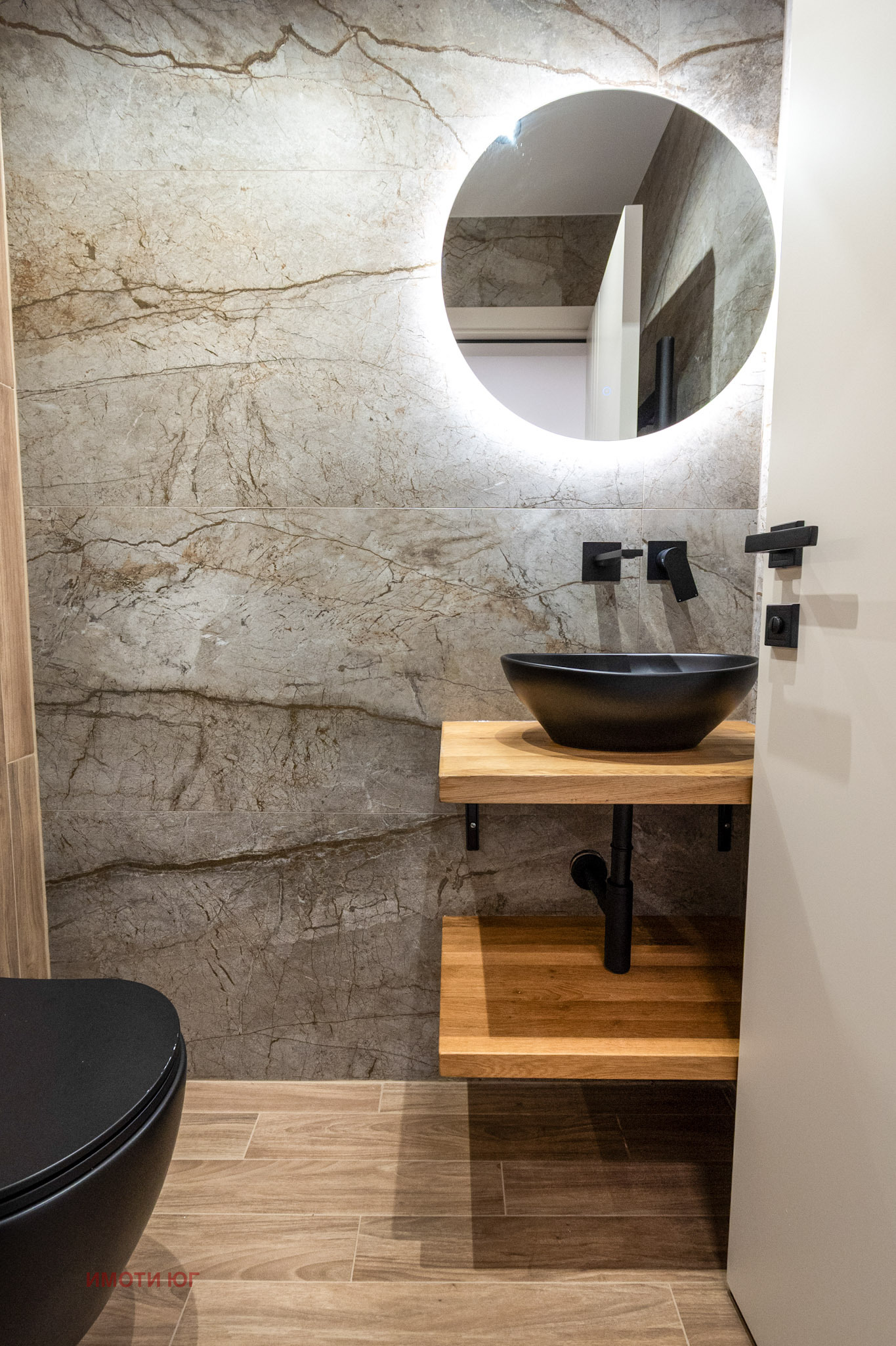 Жилището е луксозно завършено и изцяло дизайнерски обзаведено, като са използвани висок клас материали и мебели по поръчка. Кухнята е изработена от мебелна фабрика Morato с механизми Blum, осигуряващи комфорт и дълготрайност. Подовете са изпълнени с широкоформатен испански гранитогрес, а банята е със съвременна вградена санитария и елегантен дизайн. Таваните са решени с гипсокартон и интегрирано магнитно осветление, което създава модерна и уютна атмосфера.