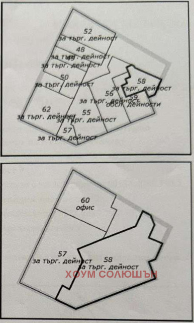 -еднопространствено помещение разделено на 5 самостоятелни зали и офис