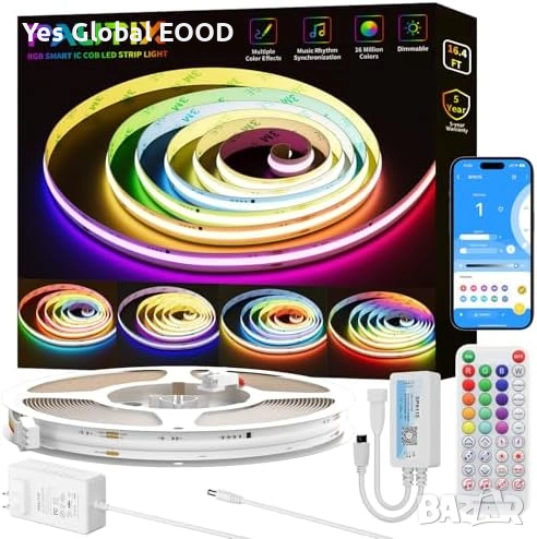 Работи на 24V и използва COB LED технология за по-равномерна и непрекъсната светлина без видими точки. Подходяща за декоративно осветление в спалня, хол, парти или гейминг пространство.