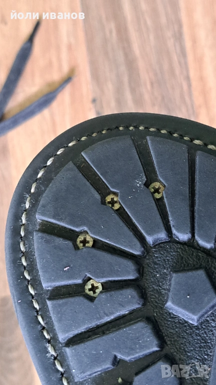 Много здрави обувки,всичко по тях е естествено,кожени,гумена подметка,шити,дори и с рапидки е захваната подметката отзад на тока и отпред,високи над глезена,качество отвсякъде,44 номер,идеално състояние без забележки,имам черни същия модел почти нови-120 евро