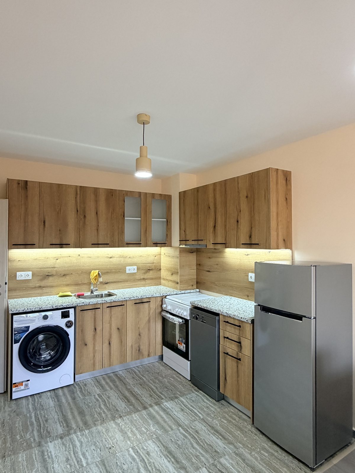 Апартаментът се отдава напълно обзаведен, като всички мебели са ЧИСТО НОВИ и специално подбрани за оптимално използване на пространството.