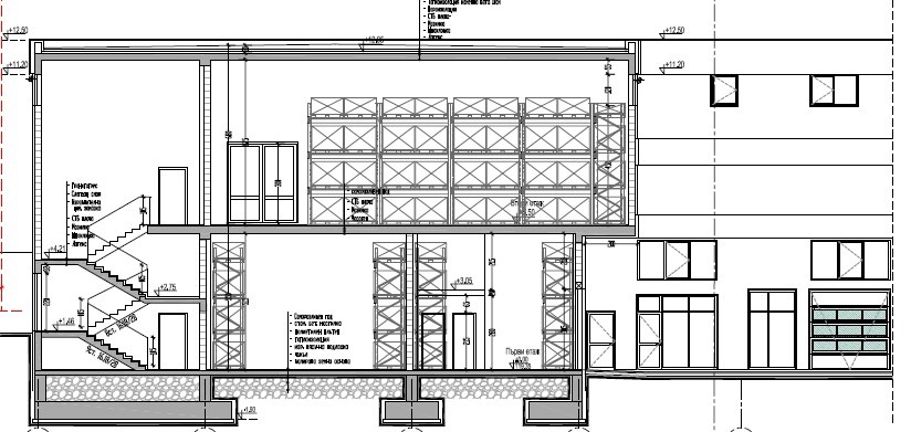В продажба промишлено помощение с височина 6.25 метра. Височината позволява удвояване на квадратурата след Акт16 с полуниво на 3.2 м. Товароносимостта е 900кг/м2. Издаване: шлайфан бетон и инсталации, офис -гипсокартон, WC - на тапа. Помещенията са подходящи за складове, мострени зали, производство, търговия. Конструкция стоманобетонна, фасада санвич панели.