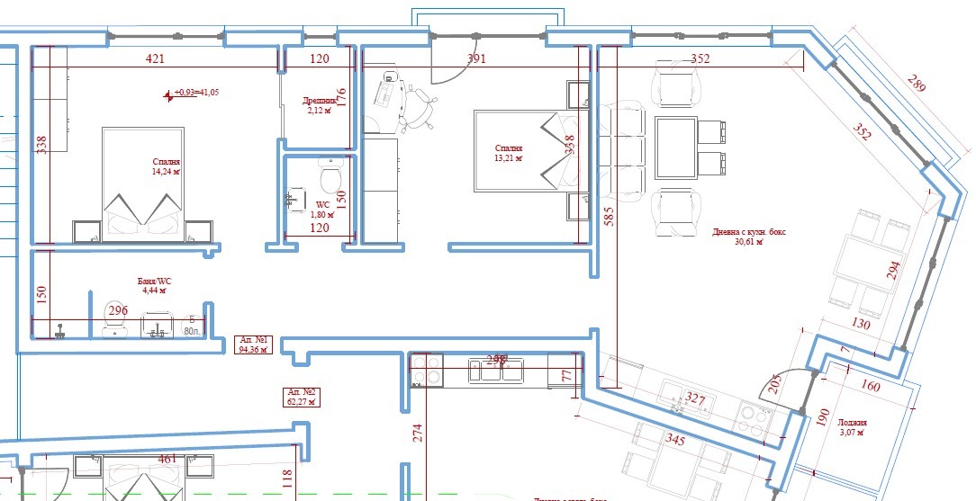 Чиста площ: 81 m², представляваща: