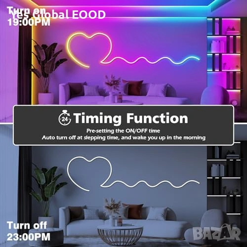 Осветлението се управлява чрез мобилно приложение или дистанционно управление и предлага множество светлинни режими. Функцията Music Sync синхронизира светлината с музиката, което я прави идеална за гейминг стая или парти атмосфера.