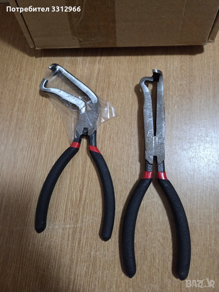 Чисто нов комплект специализирани клещи за автомобилна електроника, предназначени за безопасно разкачване на конектори и запалителни бобини. Функционалност: Позволяват лесно отстраняване на електрически конектори от дебитомери, инжектори и бобини без повреди.