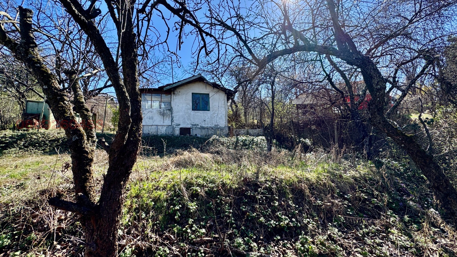 В имота се намират 1 красив орех, 2 дръвчета круша, 2 череши, лозичка с метална скара, червена и бяла астма, къпини и малини. Пред верандата на бунгалото има малка зелена тераска с метална скара за лоза и красиви растения. Идеално е за поставяне на маса, топло огнище и релакс среда и приятно прекарано време. Представи си хамак между две дървета, книжка и питие в ръка и звуците на щастлива тишина. Убежище от градския шум и стрес, при това на крачка разстояние от града в сигурна зона и елитен квартал в планината.