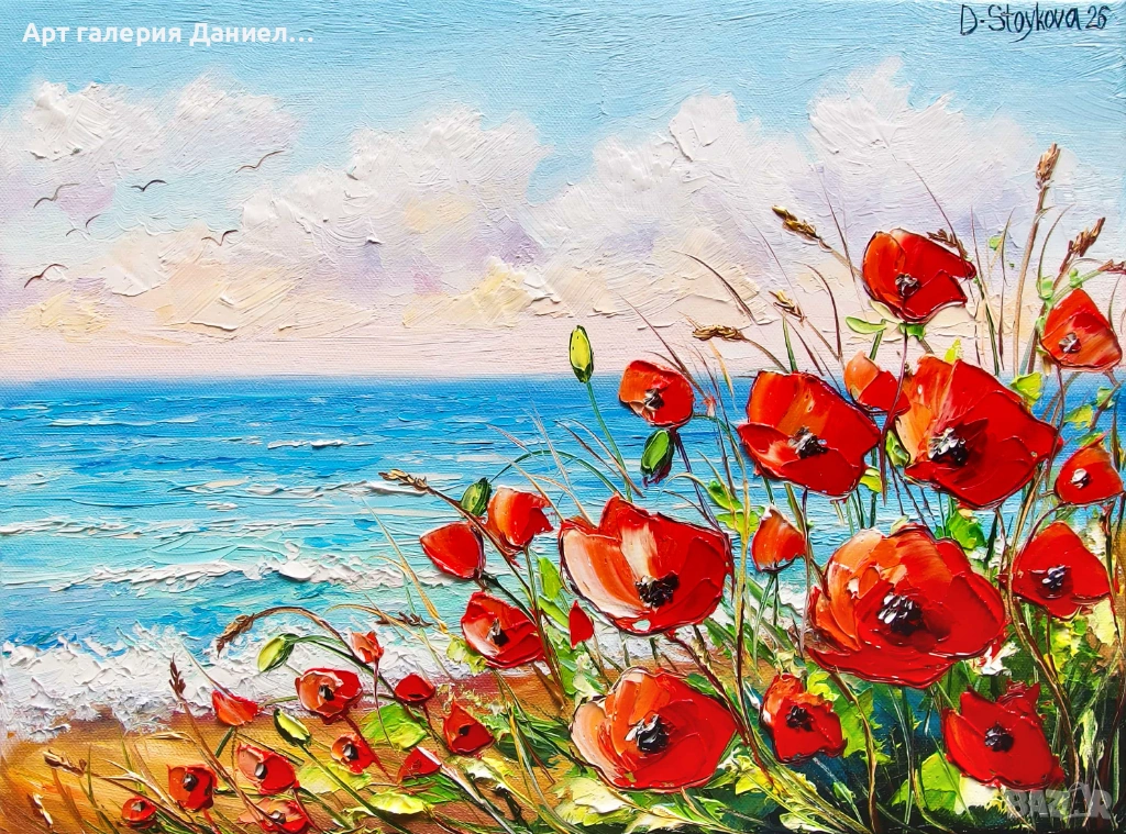 Картина с макове - Макове и море Ален бряг → Обява 53785033