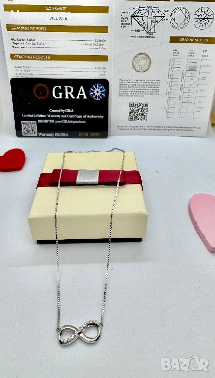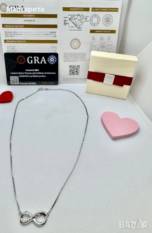 Сребърно колие с мойсанит (диамант) 10 камъка по 0.015 карата → Обява 53785316