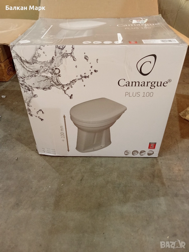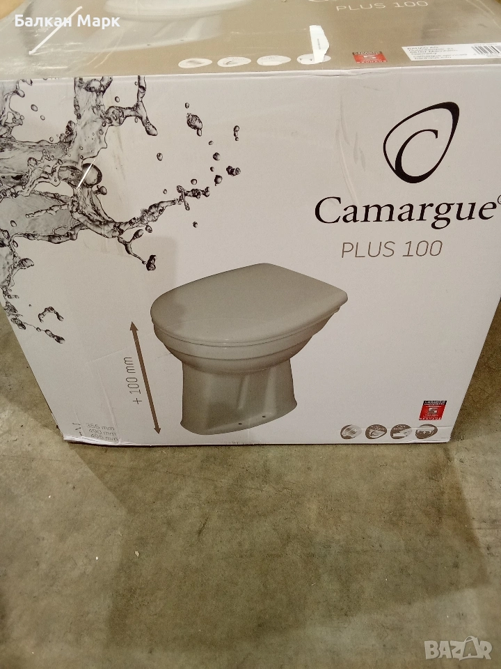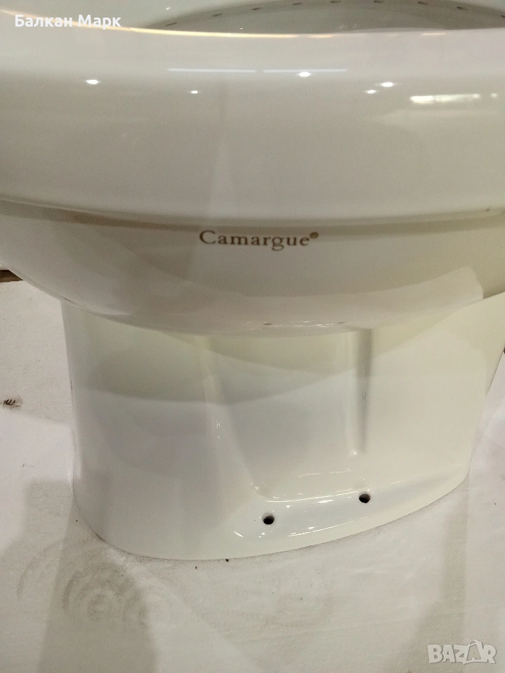 Луксозна визия: Гладка бяла керамика с логото на Camargue, изключително лесна за поддръжка и почистване.