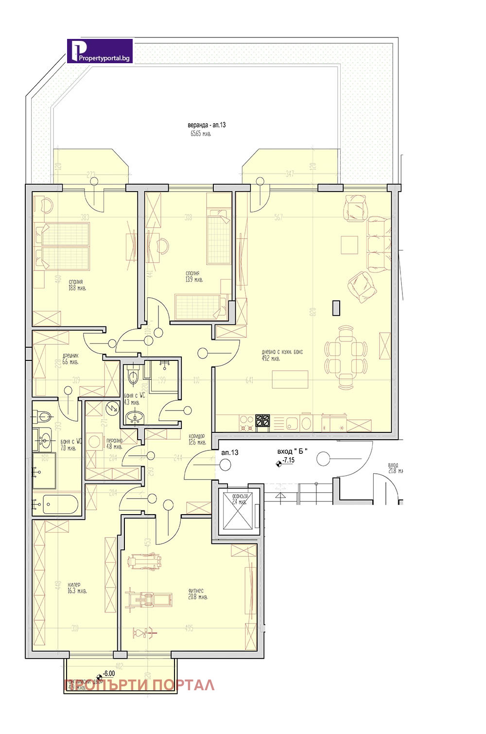 Апартаментът е със застроена площ от 201.77 кв.м., мазе 9,7кв.м. и с голяма веранда с площ от 65,65 кв.м.