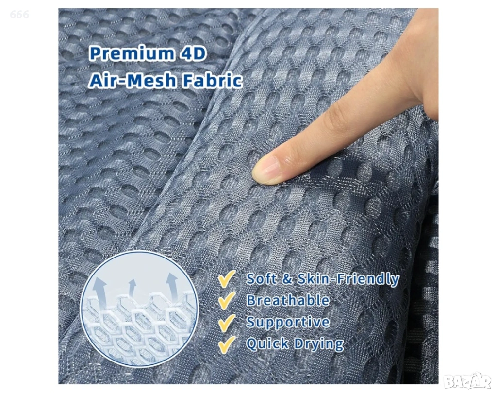 Изключително мека и подобрена: Изработена от висококачествен, подобрен 4D air mesh материал, нашата луксозна възглавница за вана се отличава с превъзходна мекота и приятно усещане. Иновативният дизайн на възглавницата за вана улеснява постоянен въздушен поток, осигурявайки бързо изсъхване след употреба. Бъдете сигурни, че водата няма да проникне във възглавницата по време на вана, оставяйки косата ви идеално суха дори след дълго накисване.