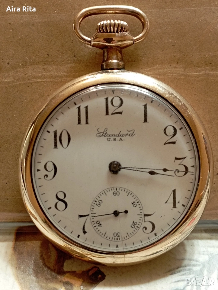Стар работещ часовник USA,позлатен 14к.USA NEW YORK STANDART WATCA CO.Произведен 1887г.Много запазен за годините си.