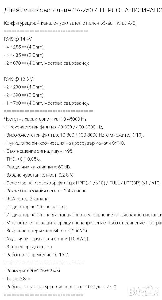 Мощен 4 канален Усилвател Dynamic State Custom CA240.4 Клас АБ → Обява 53786596