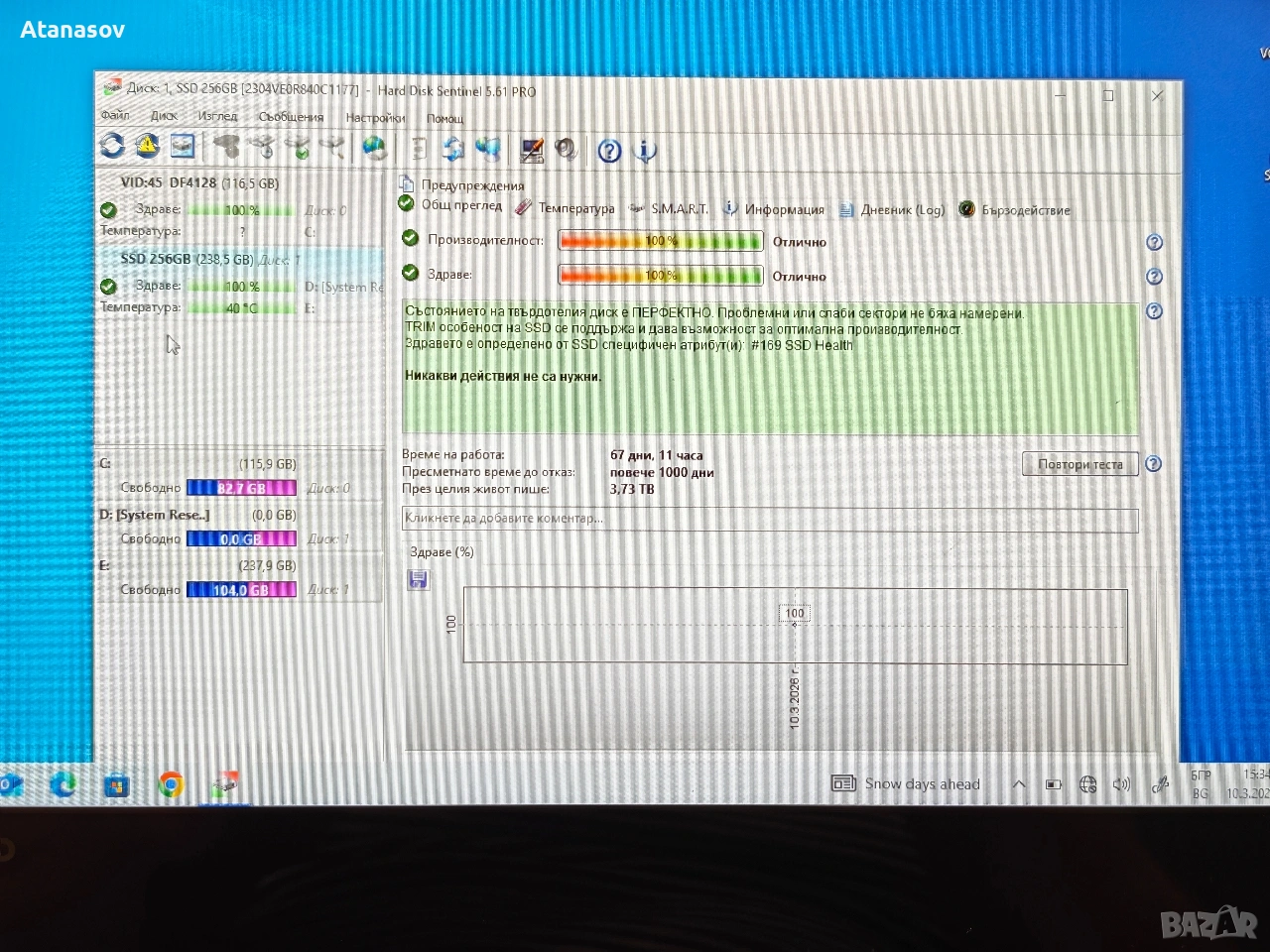 Продавам 3 броя SSD в отлично състояние и здраве 100%.