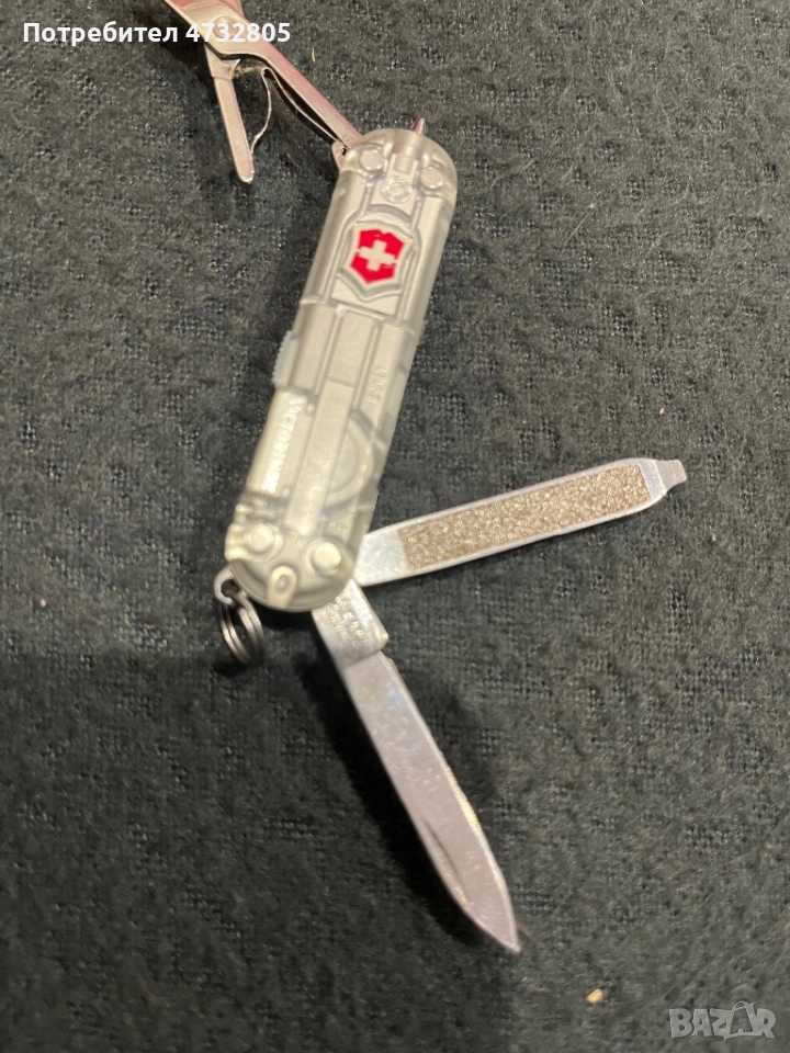 Victorinox Signature Lite: практичен сгъваем нож, подходящ за всяка чанта или джоб. Предлага много класически функции, но ще намерите и LED за осветление, и химикалка под налягане за писане или маркиране. Дължината на ножа е 58 мм. Препоръчително е да отворите файла, преди да използвате химикалката. Всяко острие се тества лично от служител. Стомана Dauphinox – е висококачествена неръждаема стомана. Съдържа въглерод C 0,48 - 0,52%, хром Cr 14,5 -15%, манган Mn 0,4 - 0,5%, силиций Si 0,5 - 0,6%, молибден Mo 0,4 - 0,6%. Остриетата имат твърдост 56 RC след закаляване при 1040°C и отвръщане при 160°C. Триончетата за дърво, ножиците и пиличките за нокти имат твърдост 53 RC, отвертките, отварачките, торбичките 52 RC, тирбушоните 49 RC. Ножът има следните функции: нож, ножица, пиличка за нокти с отвертка, ключодържател от неръждаема стомана, химикалка под налягане, LED светлина.