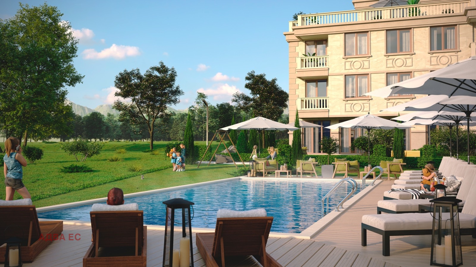 Удобства в комплекса: Открит басейн, зони за релакс и барбекю, контролиран достъп.
