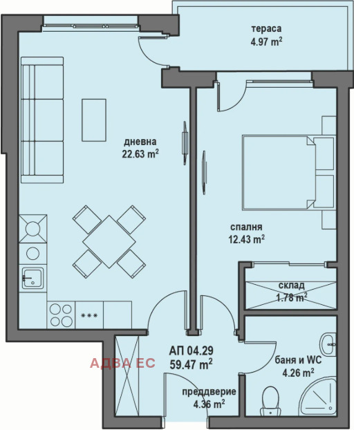 Застроена (чиста) площ: 59.47 кв.м.