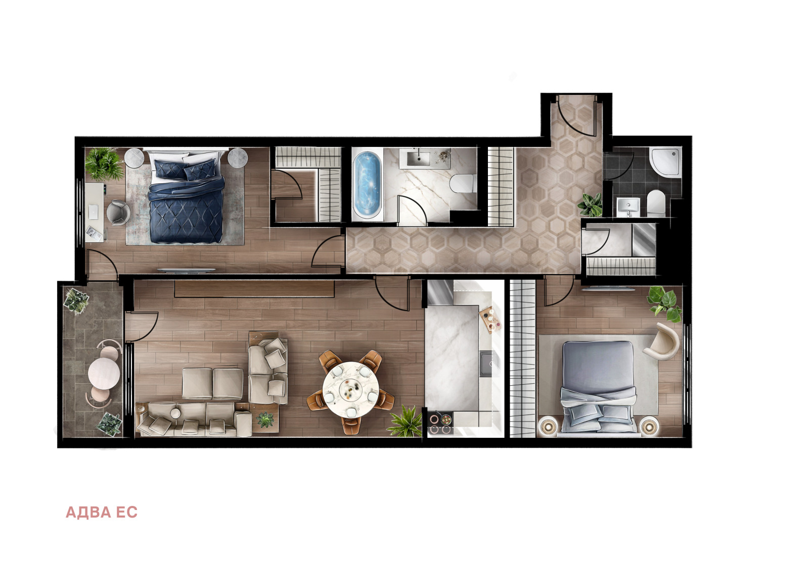 Тип имот: Тристаен апартамент (две спални).