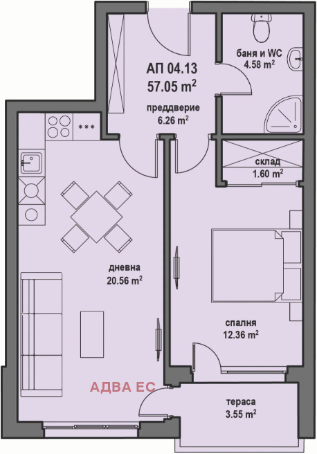 Строително-инвестиционна компания АДВА-ЕС предлага за продажба двустаен апартамент в луксозния жилищен комплекс Evergreen Bankya.