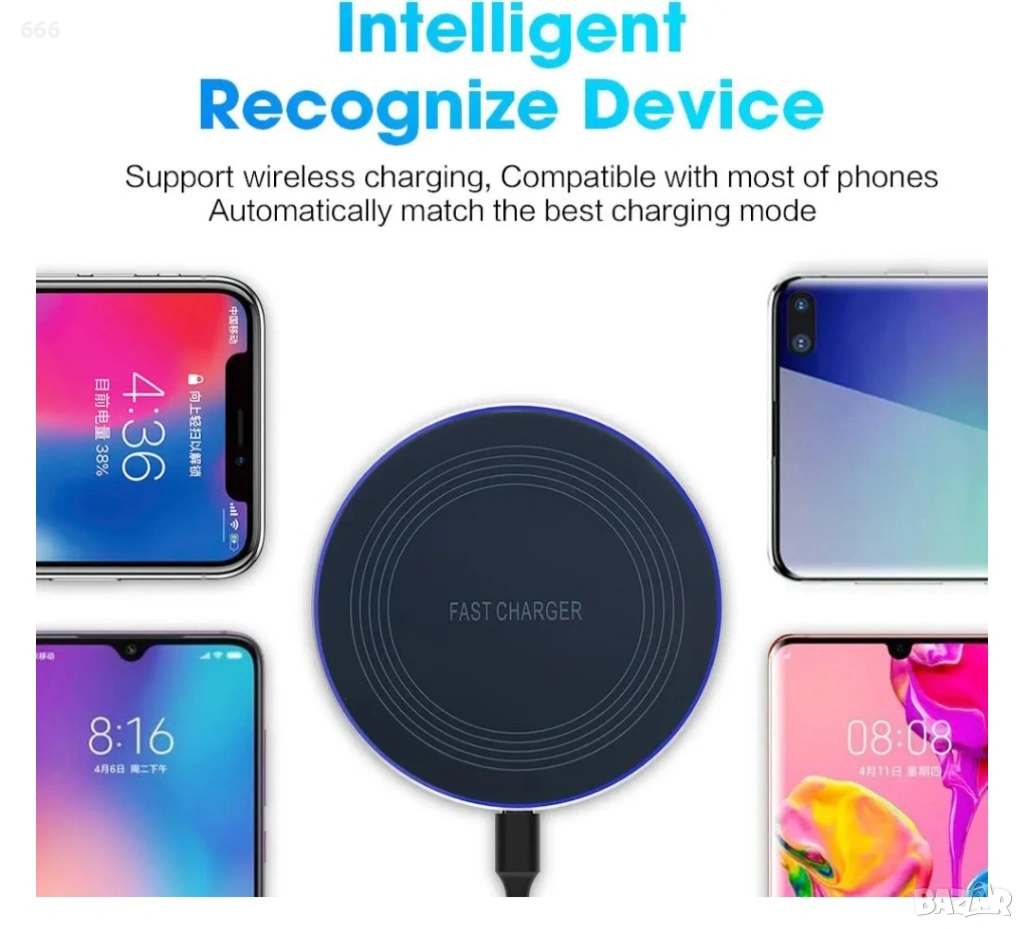 🔋Безжично зарядно устройство Лесно зареждане: С това безжично зарядно устройство вече не е необходимо да включвате и изключвате кабела за зареждане; просто поставете устройствата си в центъра на безжичното зарядно устройство, за да започнете процеса на зареждане. Зареждане: Режим на готовност, синята светлина остава включена. Нормално зареждане: Синята светлина мига 1 минута, след което се изключва.