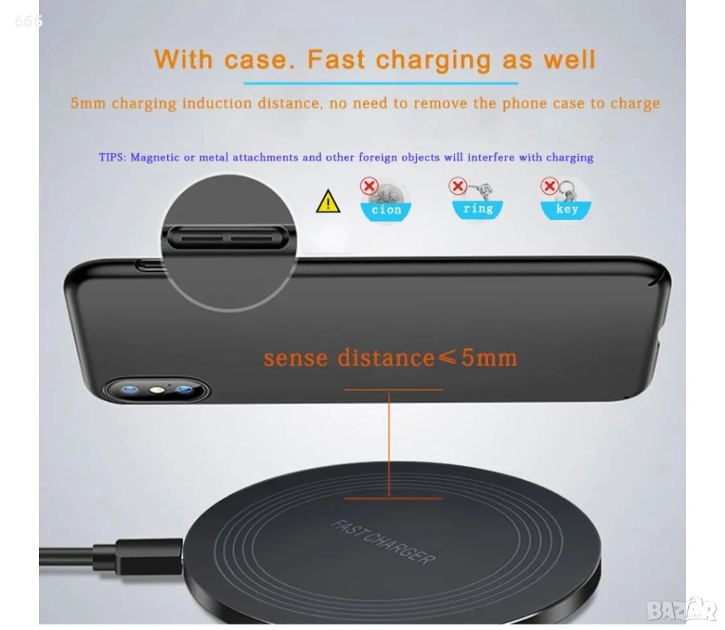 🔋Станция за зареждане на мобилен телефон: Безжичното зарядно устройство с мощност 20 W е проектирано да работи с леки пластмасови/силиконови калъфи с дебелина до 5 мм. Магнитните или металните закопчалки или карти ще предотвратят зареждането. За да се осигури правилно зареждане, дебелината на калъфа на телефона не трябва да надвишава 5 мм.