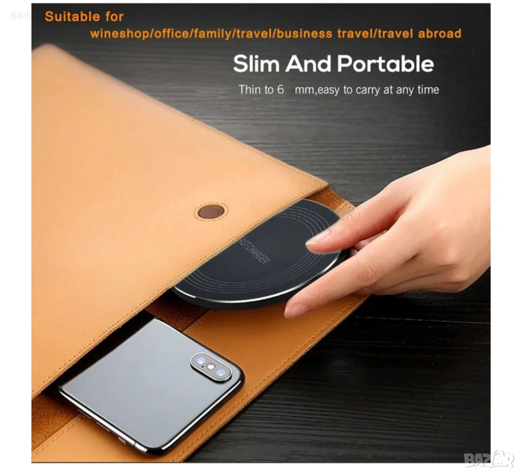 🔋Тънко безжично зарядно устройство: дебелина 6 мм, ширина 98 мм, 100 г - Тънко, леко и лесно за носене безжично зарядно устройство. Издръжлива модна усъвършенствана панелна зарядна платка, метална рамка, семпла и стилна, повърхностно обработена с противоплъзгащо покритие.