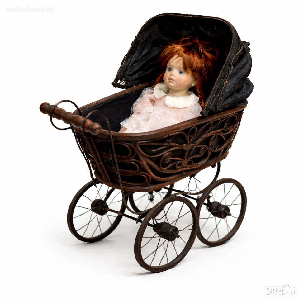 Колекционерска антична викторианска количка с кукла → Обява 53787276