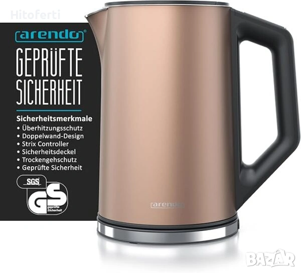 - Комфортни характеристики: Лесно пълнене благодарение на вътрешния индикатор за ниво. Корпус с двойностенно покритие – топъл е само при кипене. Камерата за пълнене е лесна за почистване благодарение на плоското дъно. Зумерът може да се изключи (напр. за да се избегне събуждане на бебе). Тестван за безопасност (GS): Нашият продукт е обстойно тестван и сертифициран със световно признатия знак за безопасност GS.