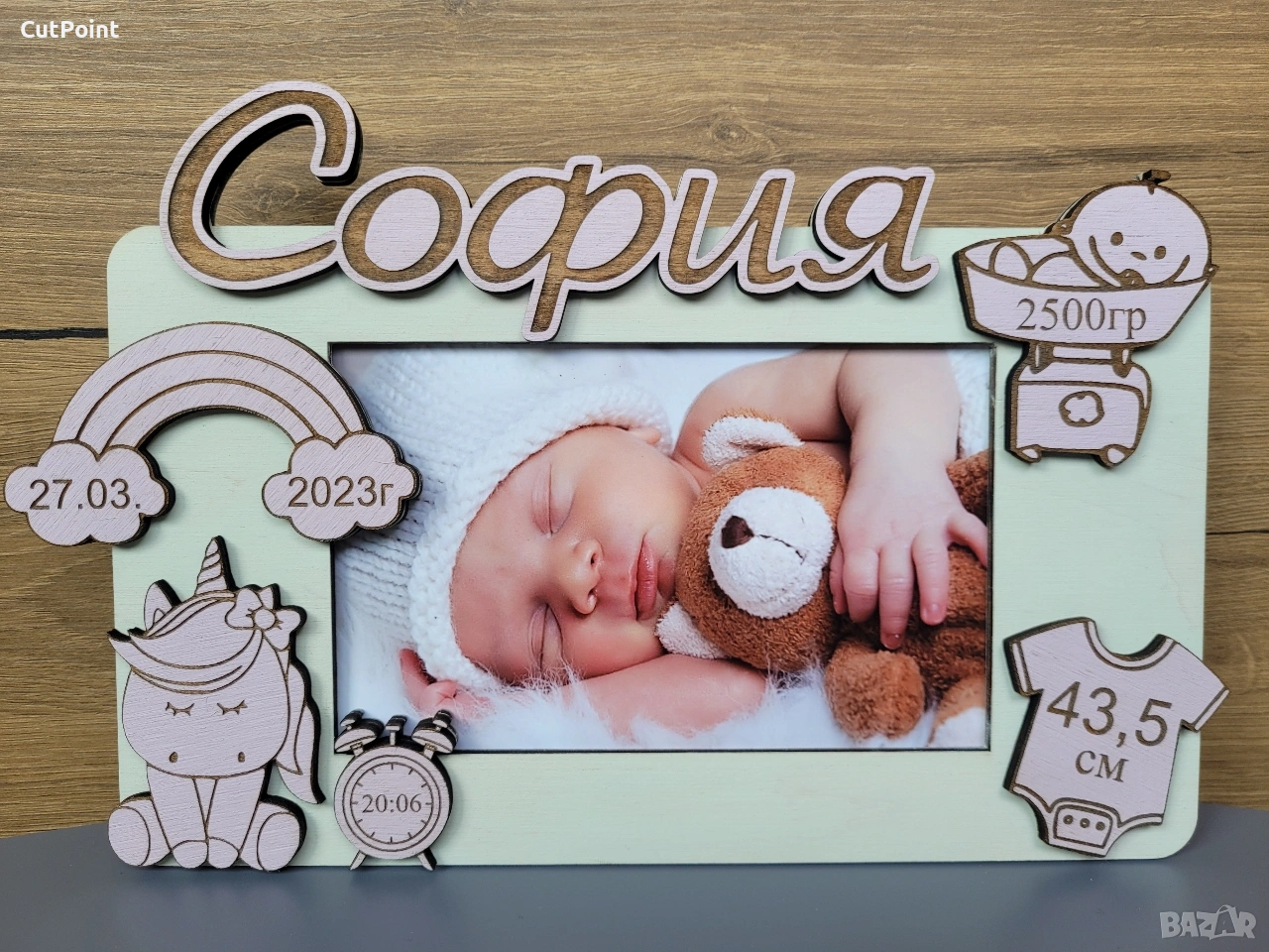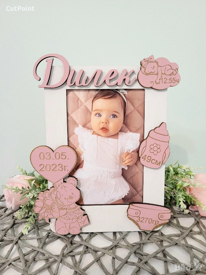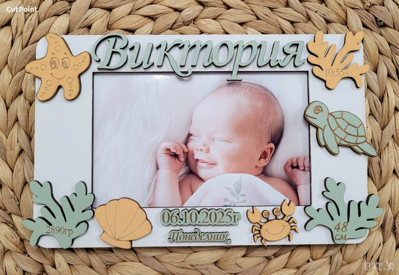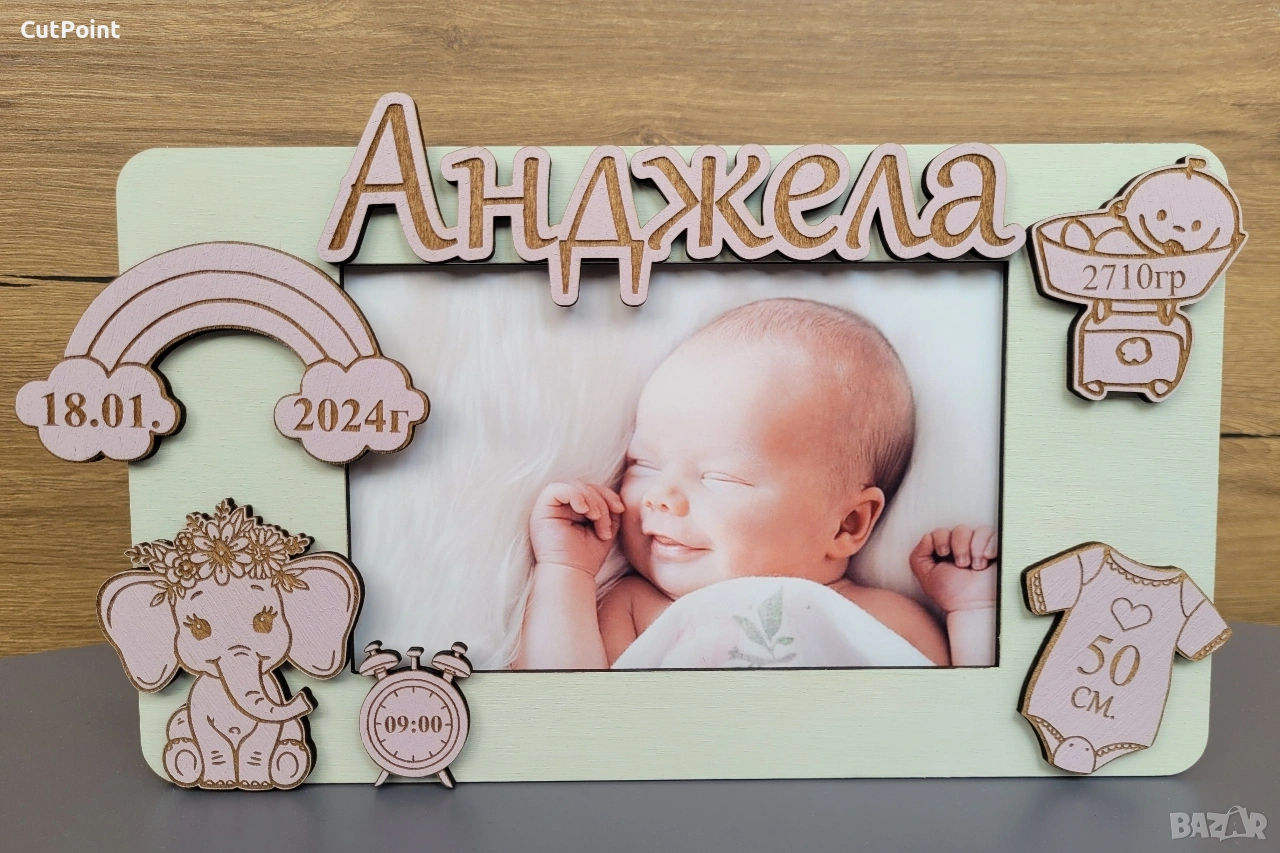 Персонализирана рамка за снимка. Подарък за бебе