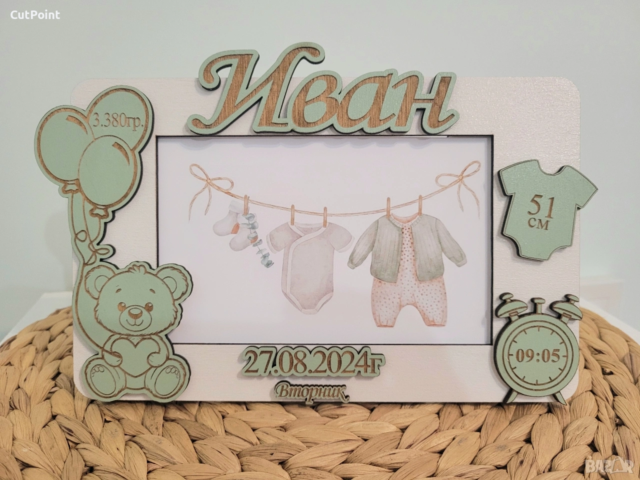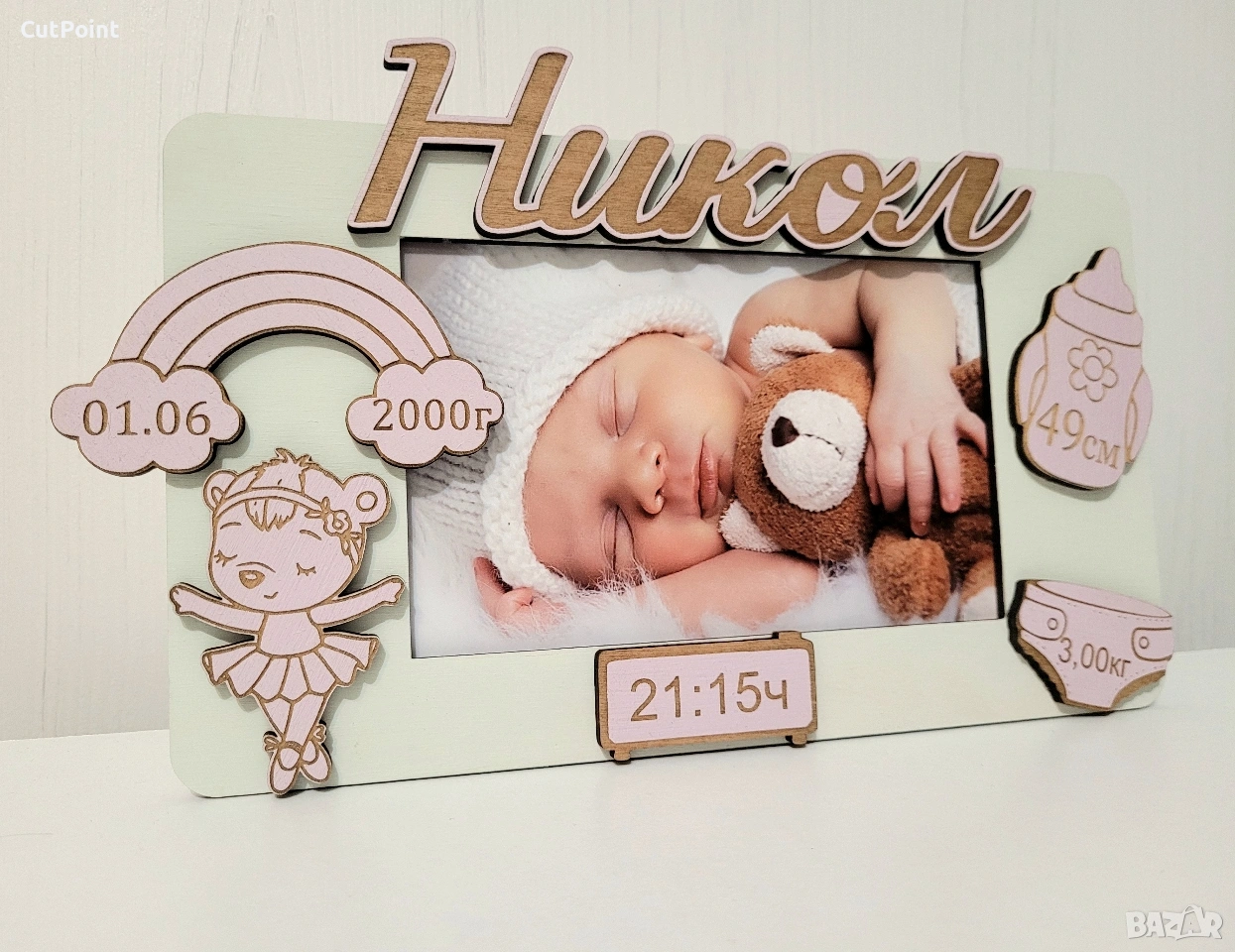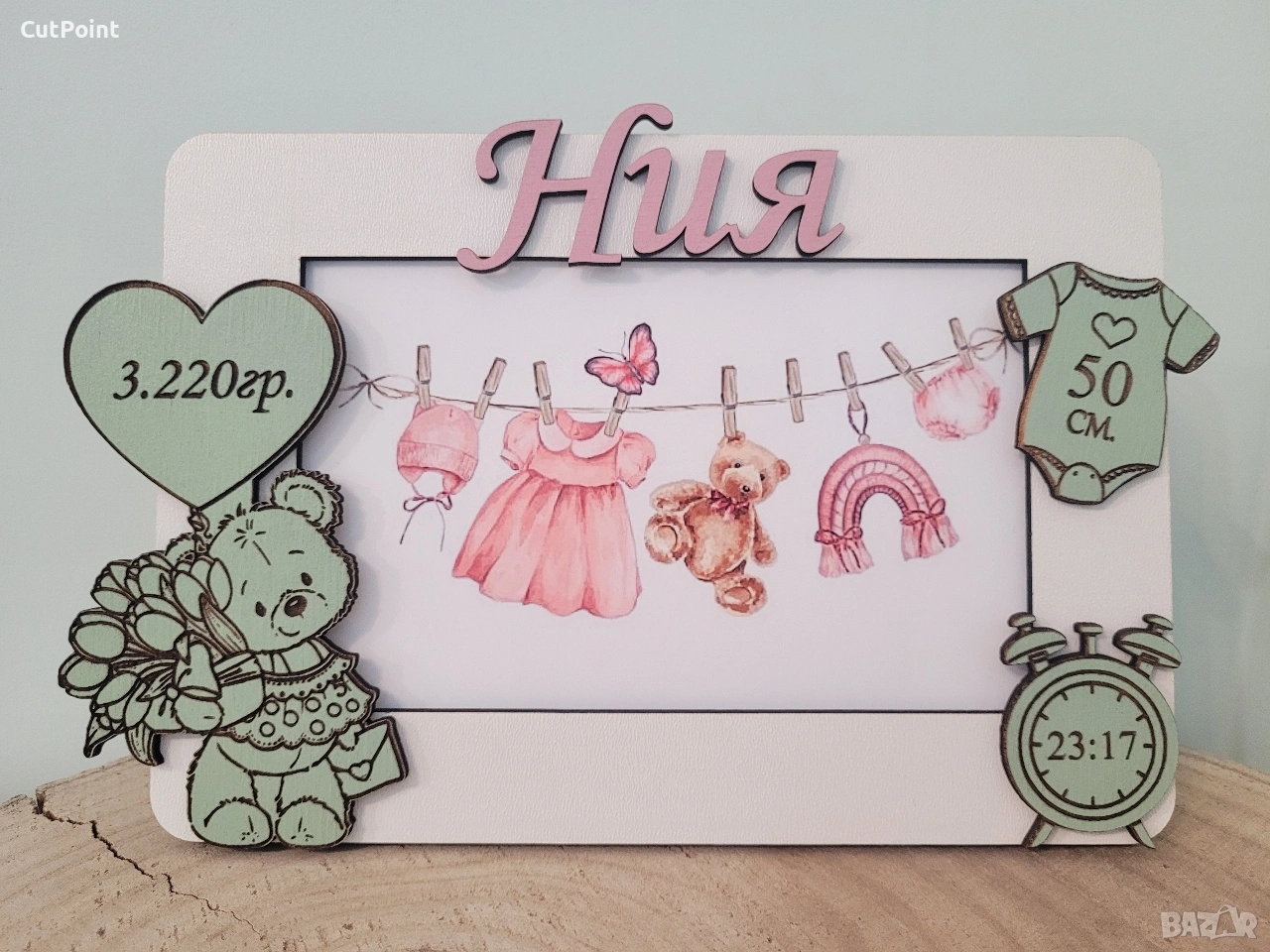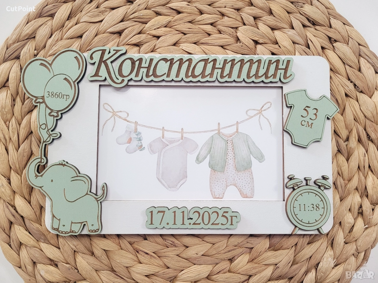 Персонализирана рамка за снимка. Подарък за бебе