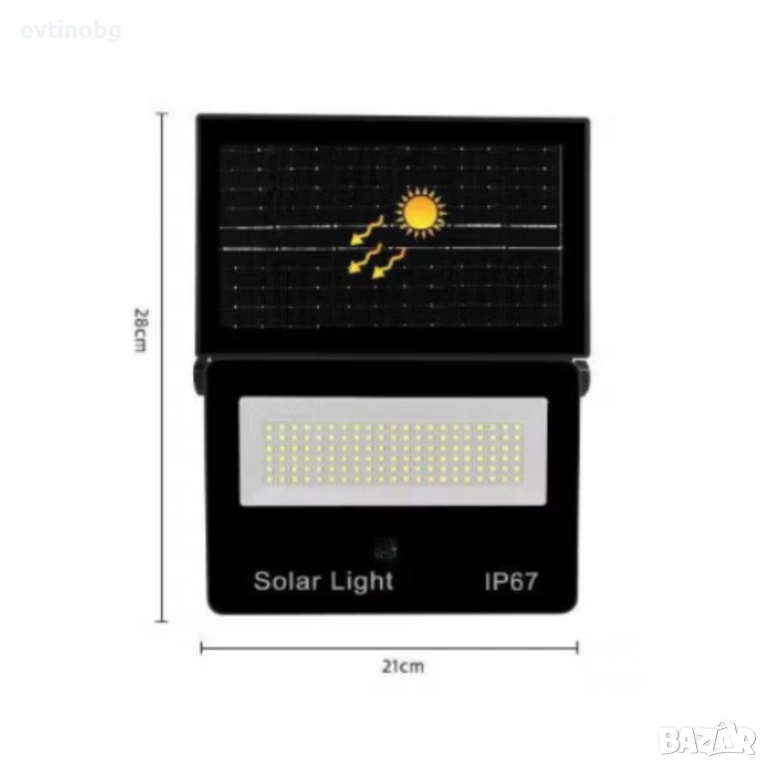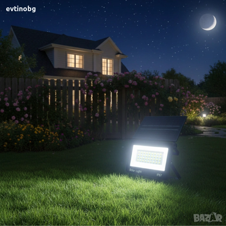 соларна лампа – мощен външен прожектор със сензор за здрач, IP67