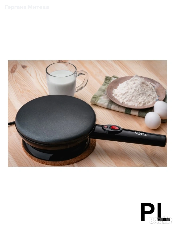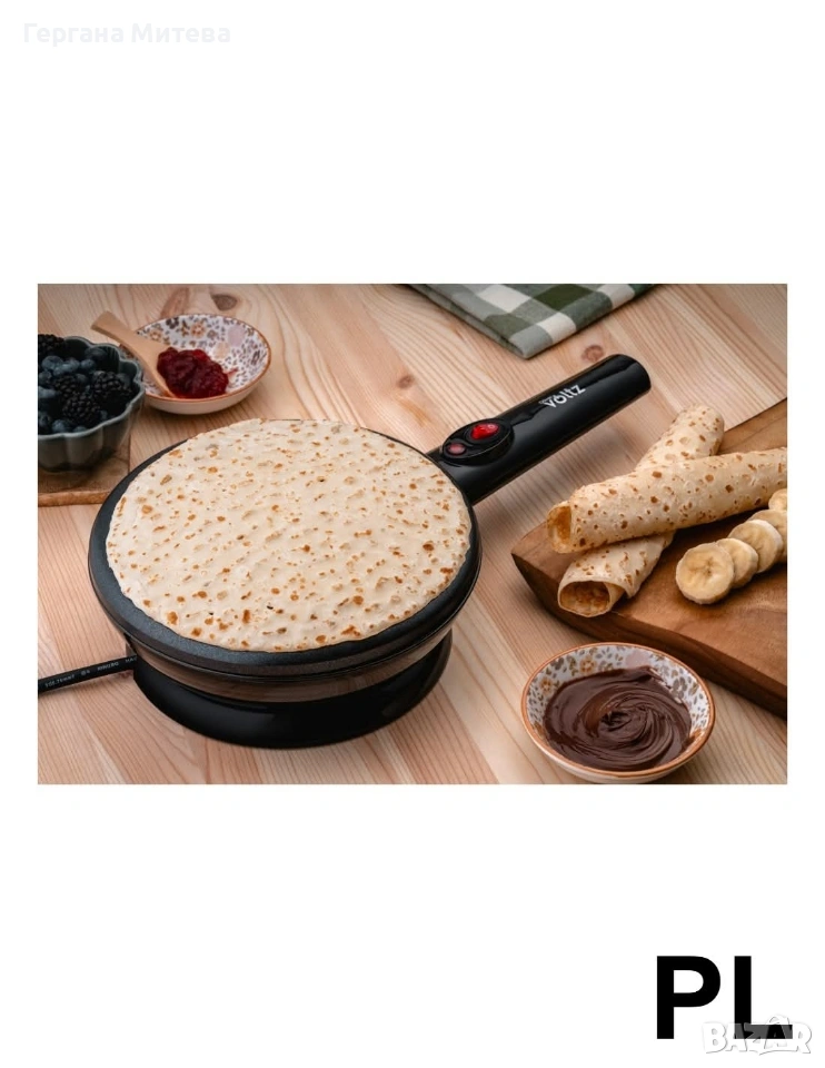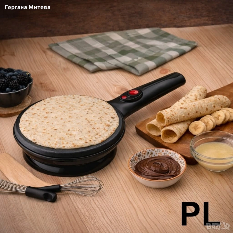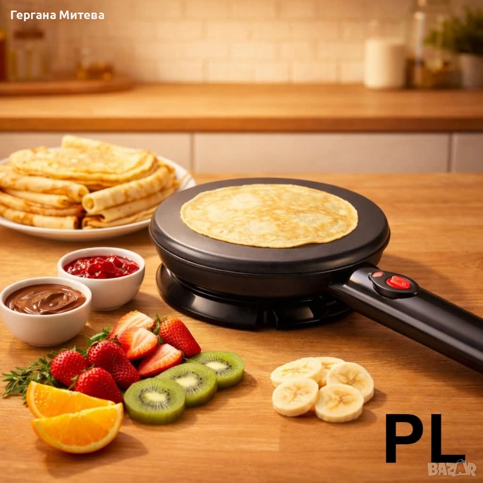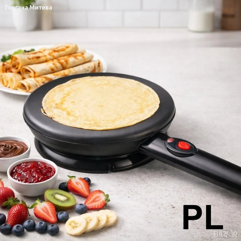 Уред за приготвяне на палачинки терморегулатор, Черен Описание: Електрическата плоча за готвене с диаметър 20 см е практичен и удобен уред, подходящ за бързо и лесно приготвяне на разнообразни ястия у дома. Благодарение на мощността от 800W, уредът загрява бързо и осигурява равномерно разпределение на топлината за отлични резултати при готвене. Плочата разполага с незалепващо покритие, което предотвратява залепването на храната и прави почистването изключително лесно и бързо. Уредът е оборудван с автоматично регулиране на температурата, което поддържа оптимална топлина по време на готвене. Вградените индикатори за работа и готовност ви показват кога уредът е включен и готов за употреба. За по-голямо удобство е предвидено отделение за съхранение на кабела, което улеснява прибирането и поддържа кухнята подредена. Крачета против хлъзгане осигуряват стабилност по време на работа. Тази електрическа плоча е идеална за приготвяне на палачинки, яйца, омлети, тостове и други вкусни ястия. Основни предимства • Мощност 800W за бързо загряване • Незалепващо покритие за лесно почистване • Автоматично регулиране на температурата • Индикатор за работа и готовност • Крачета против хлъзгане за стабилност • Отделение за съхранение на кабела • Комплект аксесоари – шпатула, бъркалка и купичка Технически характеристики Диаметър на плочата: 20 см Мощност: 800W Захранване: 220–240V ~ 50/60Hz Покритие: Незалепващо Автоматично регулиране на температурата Крачета против хлъзгане Отделение за кабела Гответе бързо и лесно с електрическата плоча за готвене 20 см. Благодарение на мощността от 800W и незалепващото покритие ще приготвяте любимите си ястия без усилие. Комплектът аксесоари прави уреда още по-практичен за ежедневна употреба във всяка кухня. Състояние:Ново 2 години гаранция Доставка до 3-4 дни с преглед и тест