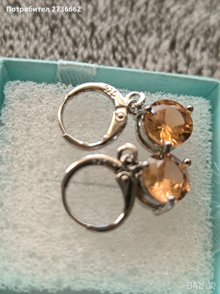 Сребърни обеци с жълт цирконии → Обява 53788082