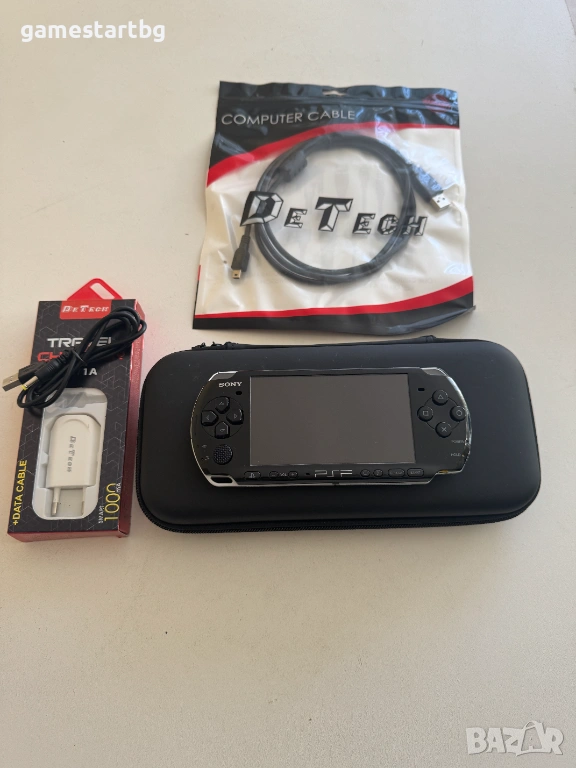 Към конзолата има батерия OSTENT , калъф тип чантичка,неоригинално зарядно и кабел за зареждане,mini USB кабел за връзка с PC и карта памет 32GB .