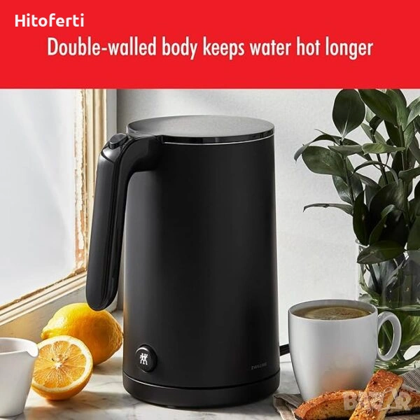 - Корпусът с двойни стени поддържа водата по-гореща за по-дълго, докато външната част остава хладна на допир
