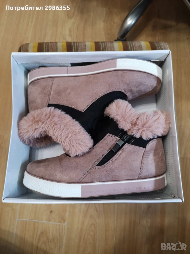 Розови, велурени, дамски боти. Топли и меки. Обувани са не повече от 5 пъти.