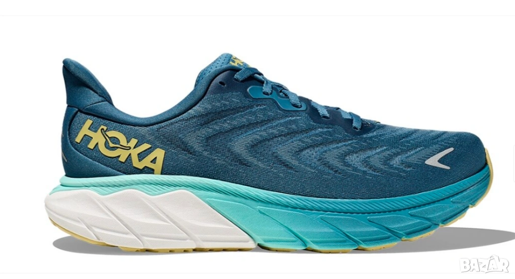 Бягането е страст, начин на живот и предизвикателство. За да посрещнете това предизвикателство, подходящото оборудване е от ключово значение. Мъжката обувка за бягане HOKA Arahi 6 съчетава най-съвременните технологии с грижа за планетата. Мрежестата горна част на HOKA Arahi 6 гарантира оптимално дишане , което е изключително важно по време на интензивни тренировки. Тези свойства на дишане осигуряват топлинен комфорт и свеждат до минимум риска от протриване. Междинната подметка от пяна CMEVA осигурява отлично омекотяване и предпазва краката от неравности на терена, а гумената подметка предлага несравнимо сцепление и издръжливост . Теглото на обувката я прави незабележима при бягане, което позволява по-добро представяне.