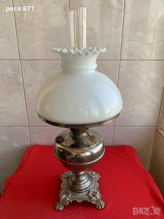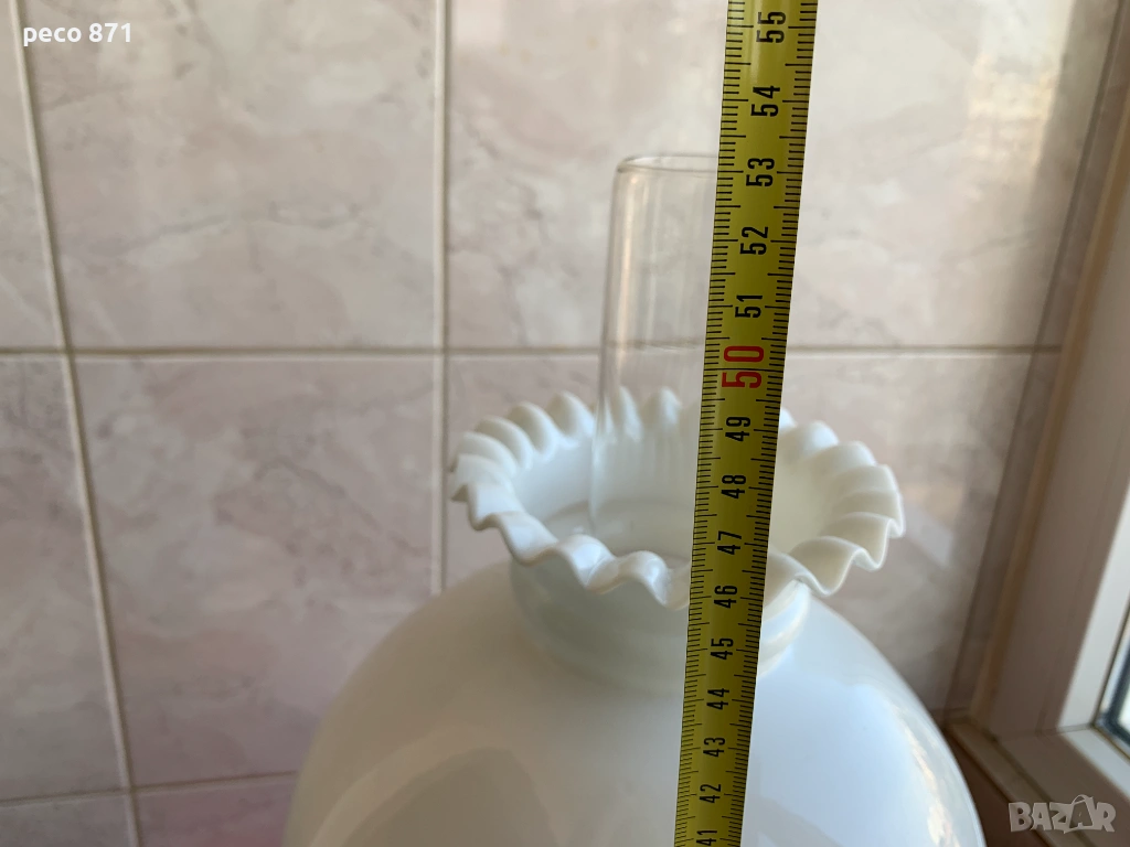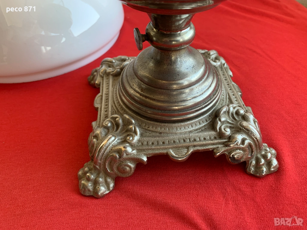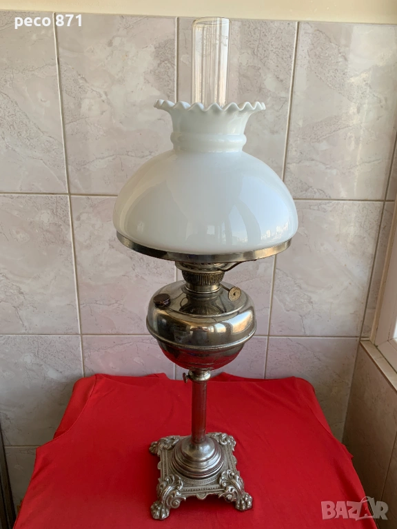 Състояние,по снимките.Ако имате въпроси,пишете на лични.Само лична среща,няма да рискувам да я пращам.За София лична среща в района на Бъкстон или Руски паметник.Добро общо състояние,пукнатини на едно място в основата на вътрешното дълго стъкло,снимал съм ги,ако се внимава при почистване и миене,може да изкара още дълго време.В основата на стъклото са,не се виждат когато лампата е сглобена. Лампата се разтяга на височина,в разтегнато положение,обща височина около 63 см.,в прибрано положение около 53 см.