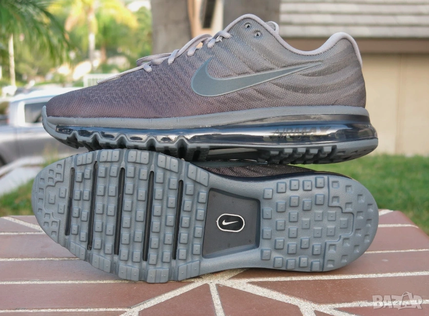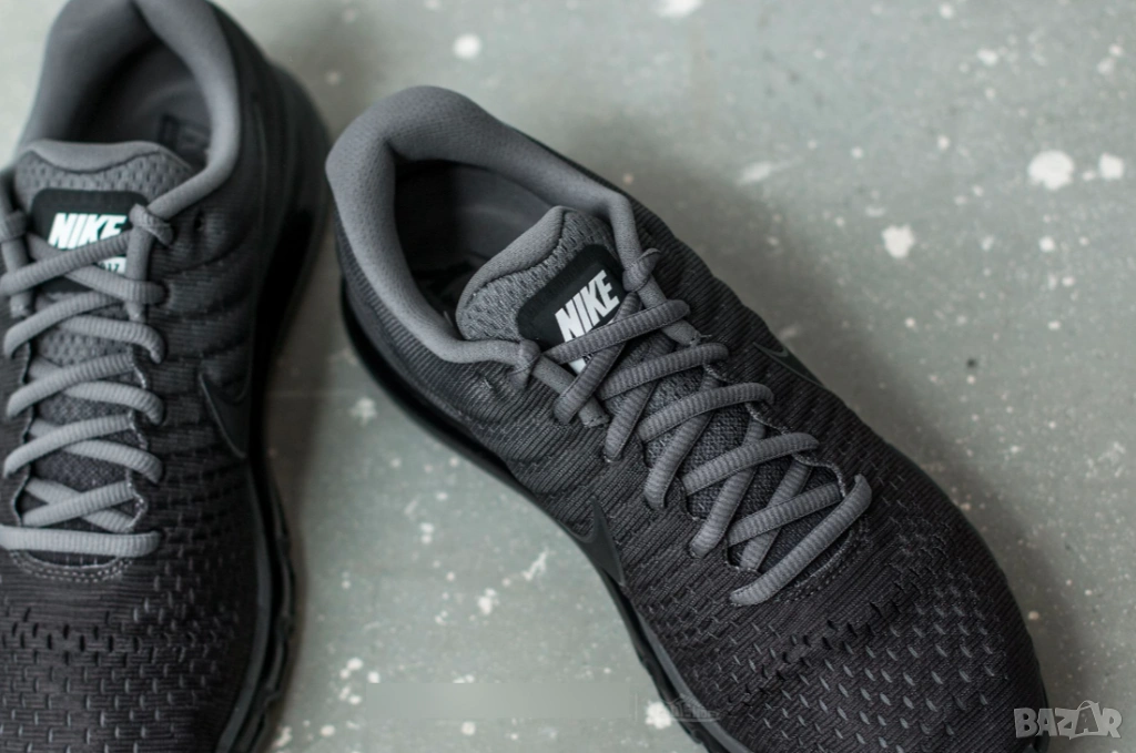 Nike Air Max 2017, като конкретната разцветка е "Cool Grey / Anthracite / Dark Grey". Този модел е част от годишните актуализации на емблематичната линия Air Max, отличаващ се с цялостна въздушна камера за омекотяване.