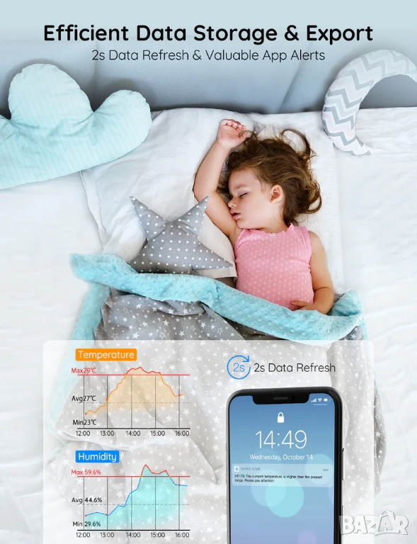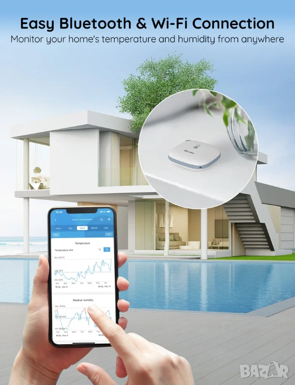 Практично устройство за всеки, който иска да следи температурата и влажността в дома си и да поддържа оптимална среда за комфорт и здраве.