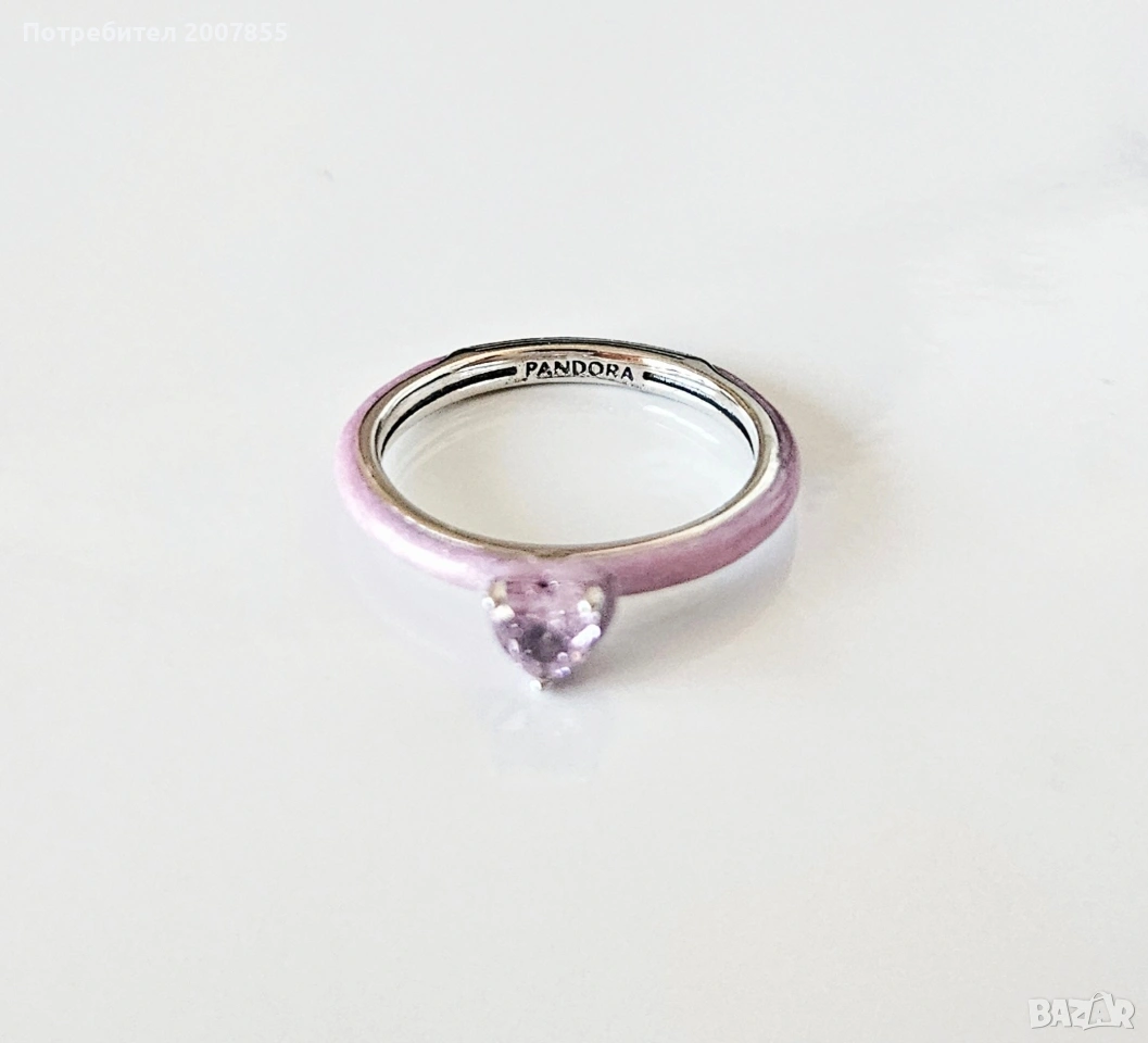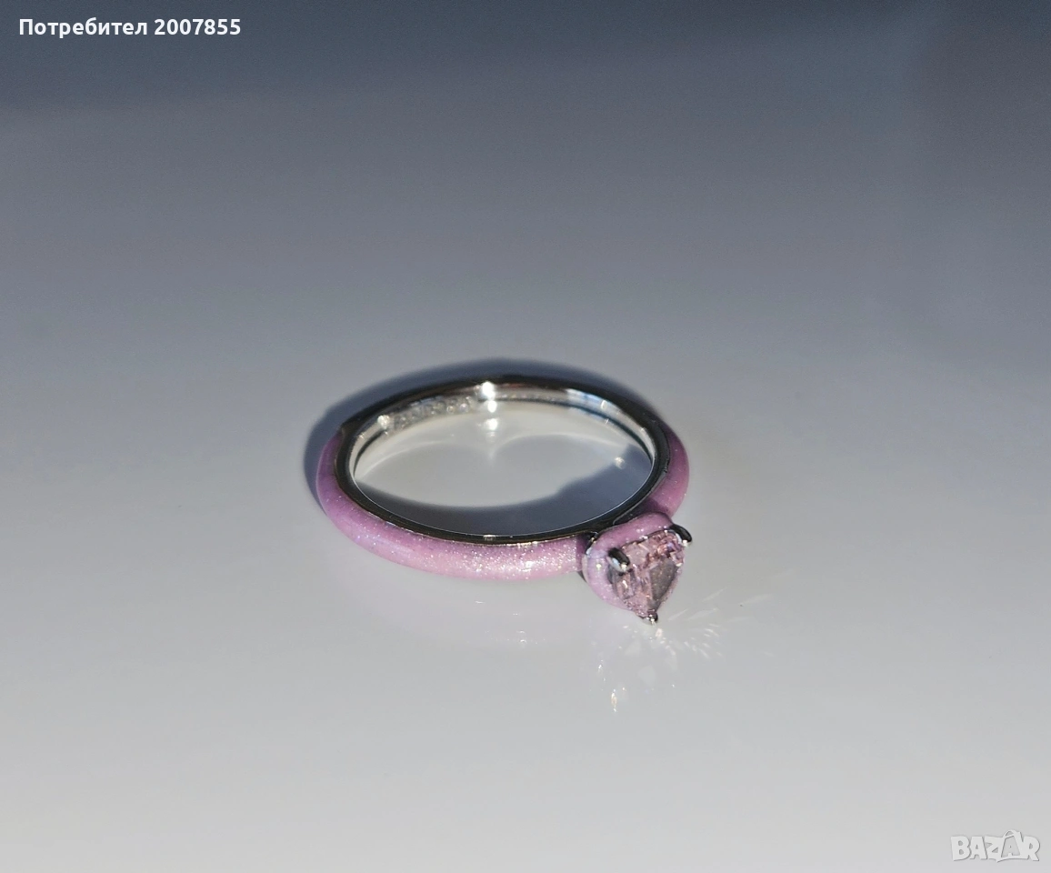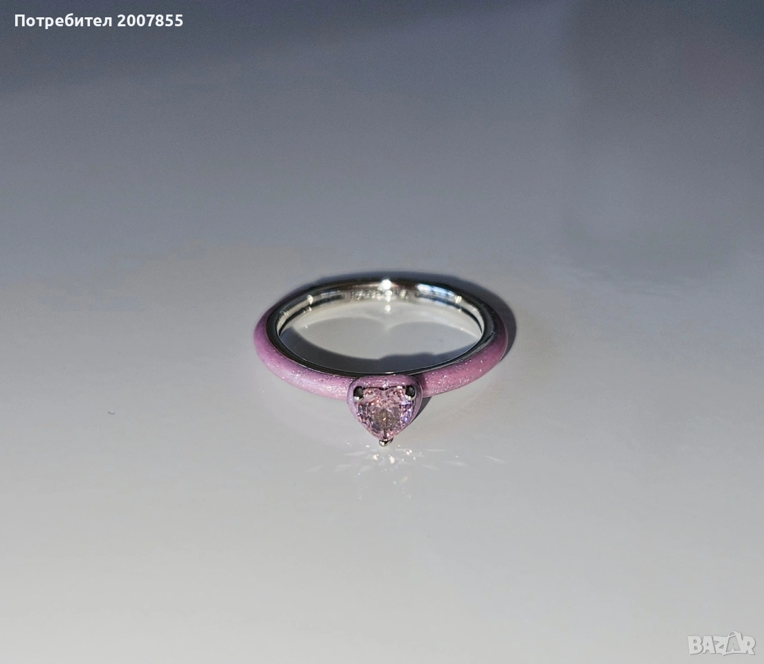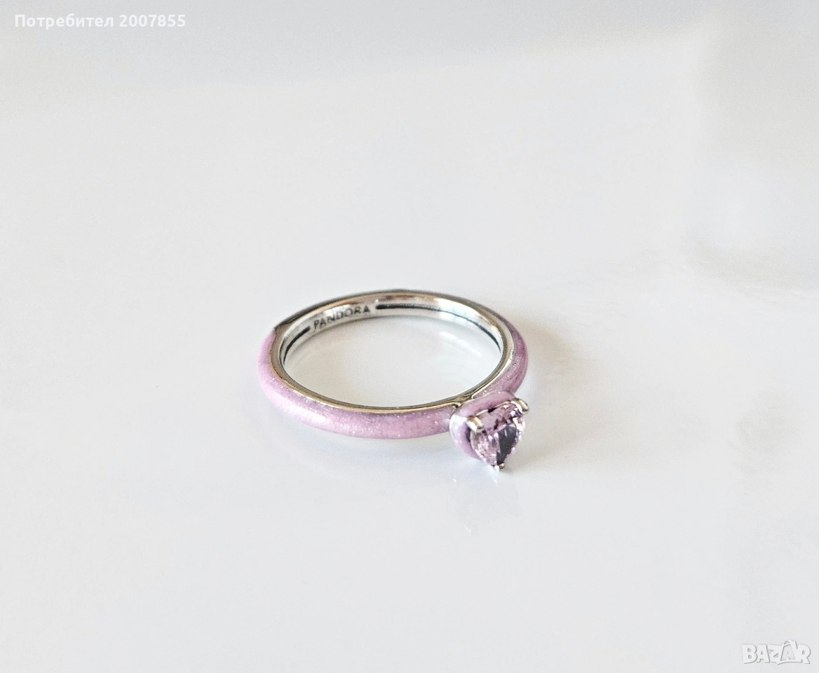 Чисто нов нежен и красив сребърен ръстен от серията Pandora Me Аз обичам. Чакра сърце/Chakra ring. Блести уникално, розов glitter ефект по пръстена, с розов кристал. Идеален аксесоар за ежедневието и за подарък. С надпис Пандора.