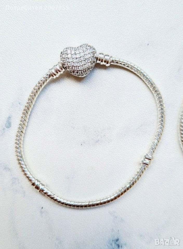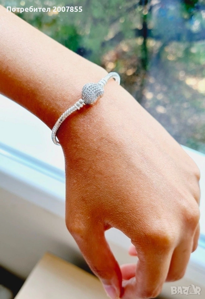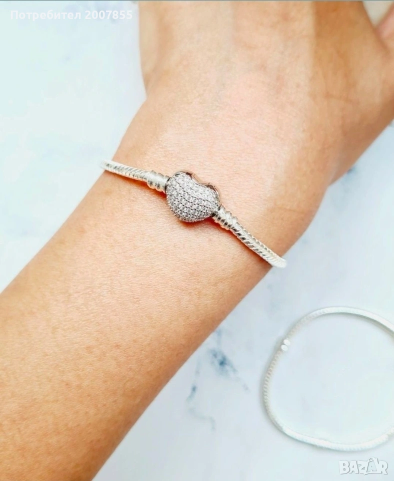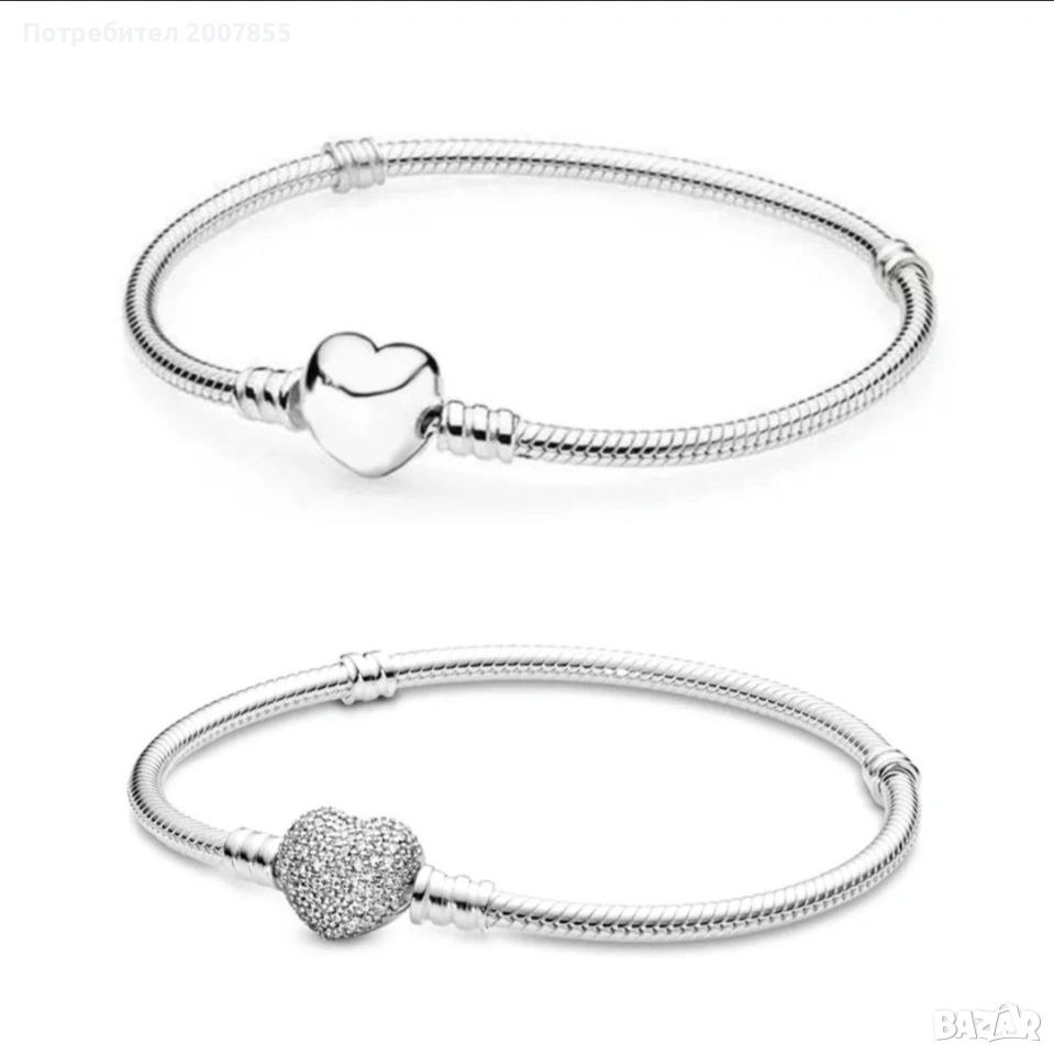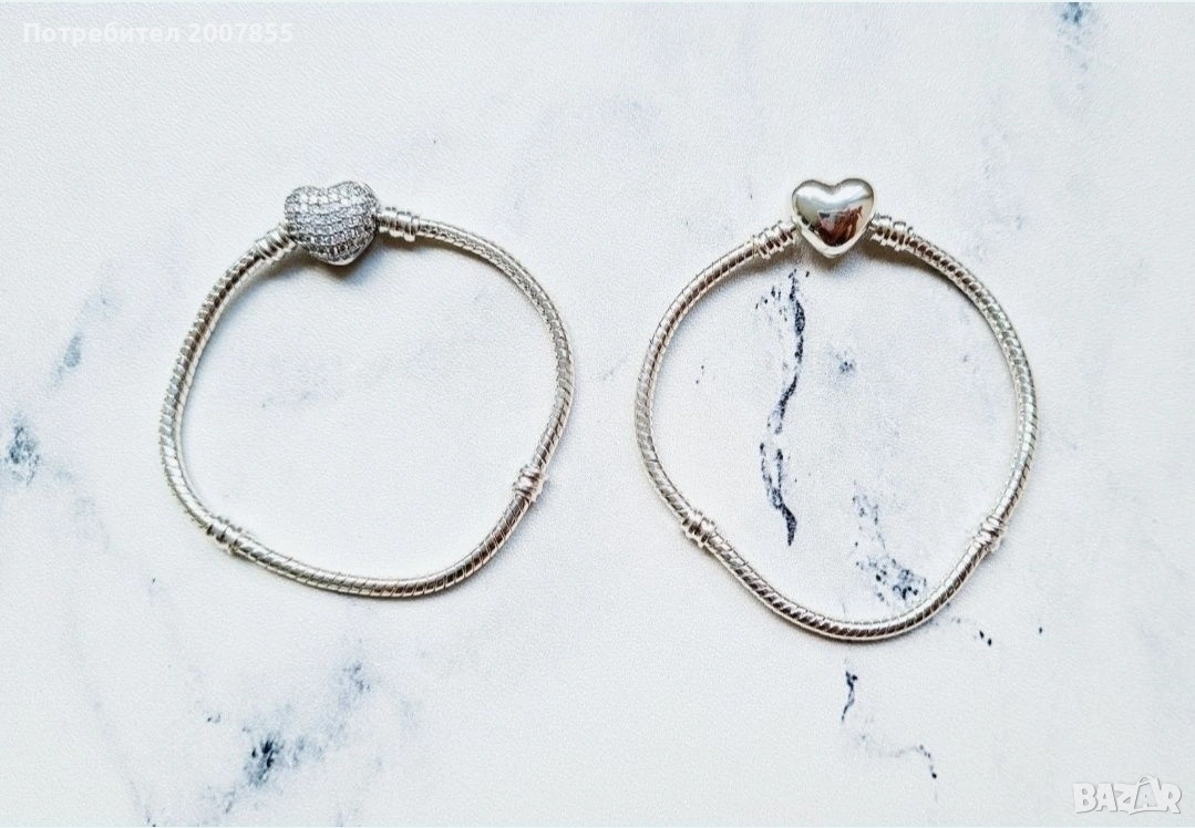 Продавам уникално красиви сребърни гривни Pandora Пандора в 2 модела: сърца с кристали - 28€ и без кристали - 23€