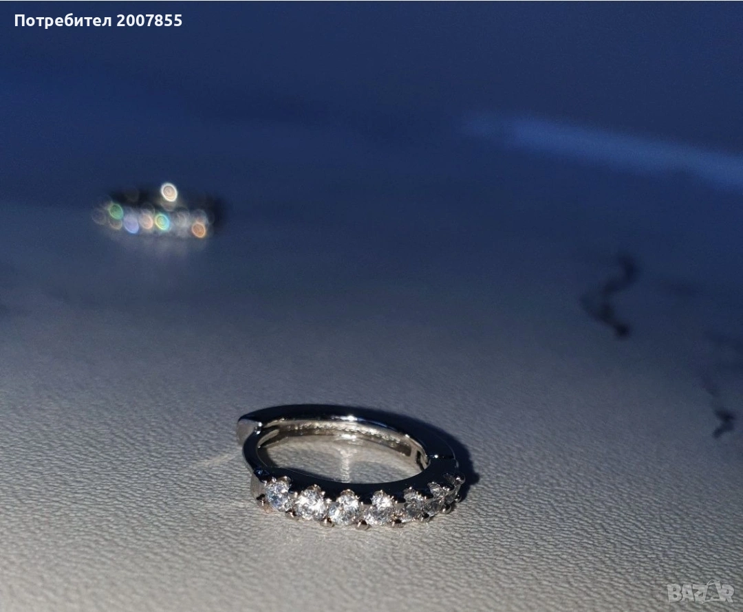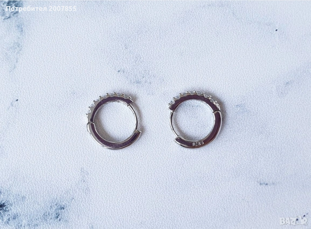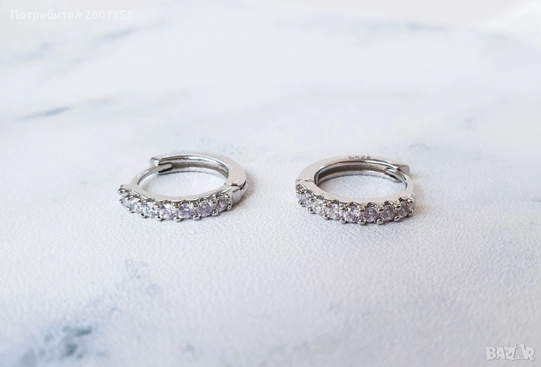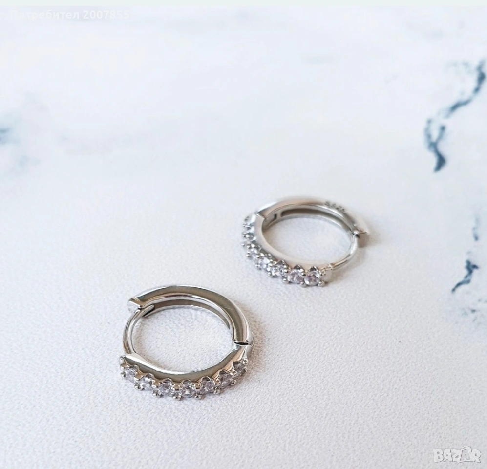 Продавам дамски сребърни обици тип халка с кристали цирконий. Диаметър - 1,4 см. Много нежни, красиви обици. Среброто е истинско 925 - не се изтърква или избелява. Чисто нови. Изпращам по Еконт или Спиди с опция преглед и тест.
