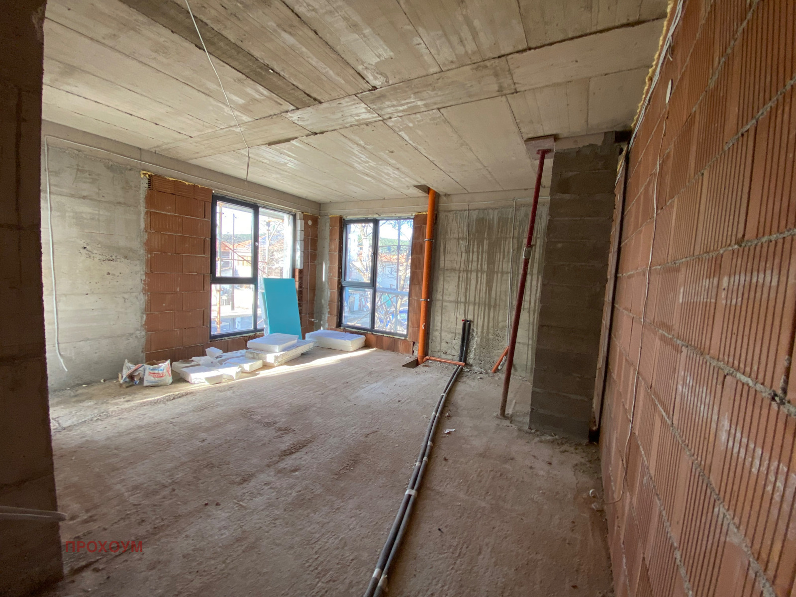 РАЗПРЕДЕЛЕНИЕ: дневна с кухненски бокс, родителска спалня, втора спалня, баня с тоалетна, коридор и хубава тераса.