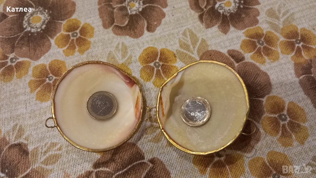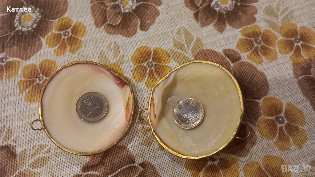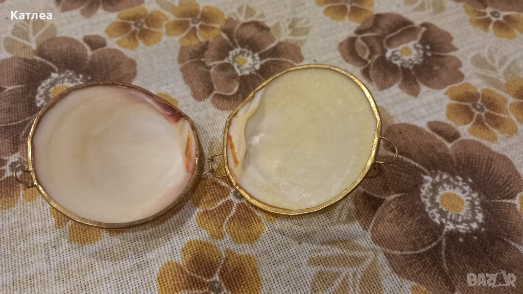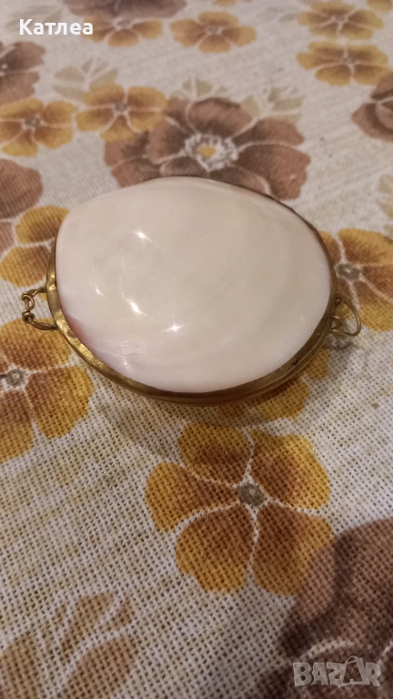 Винтидж кутия за бижута мида, изработена е от естествена мида с месингова рамка, панта и закопчалка. Може да се използва за съхранение на различни ценни предмети. Отлично състояние без забележки.