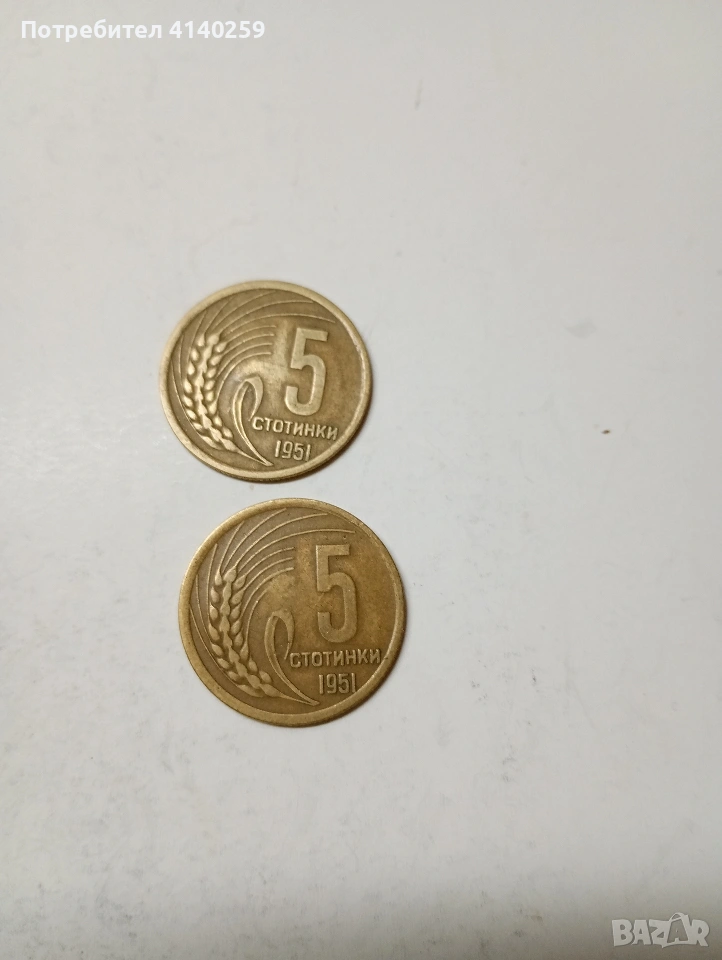 БЪЛГАРСКИ МОНЕТИ 5 СТОТИНКИ 1951 Г МЕСИНГ НЕЧИСТЕНИ ЦЕНА ЗА 5 БРОЯ СЪСТОЯНИЕ ОТЛИЧНО ПОЛУЧАВАТЕ СНИМАНИТЕ МОНЕТИ РАЗГЛЕДАЙТЕ ДРУГИТЕ МИ ОБЯВИ ДА КОМБИНИРАТЕ ДОСТАВКА ЕКОНТ ЗА ВАРНА ЛИЧНО
